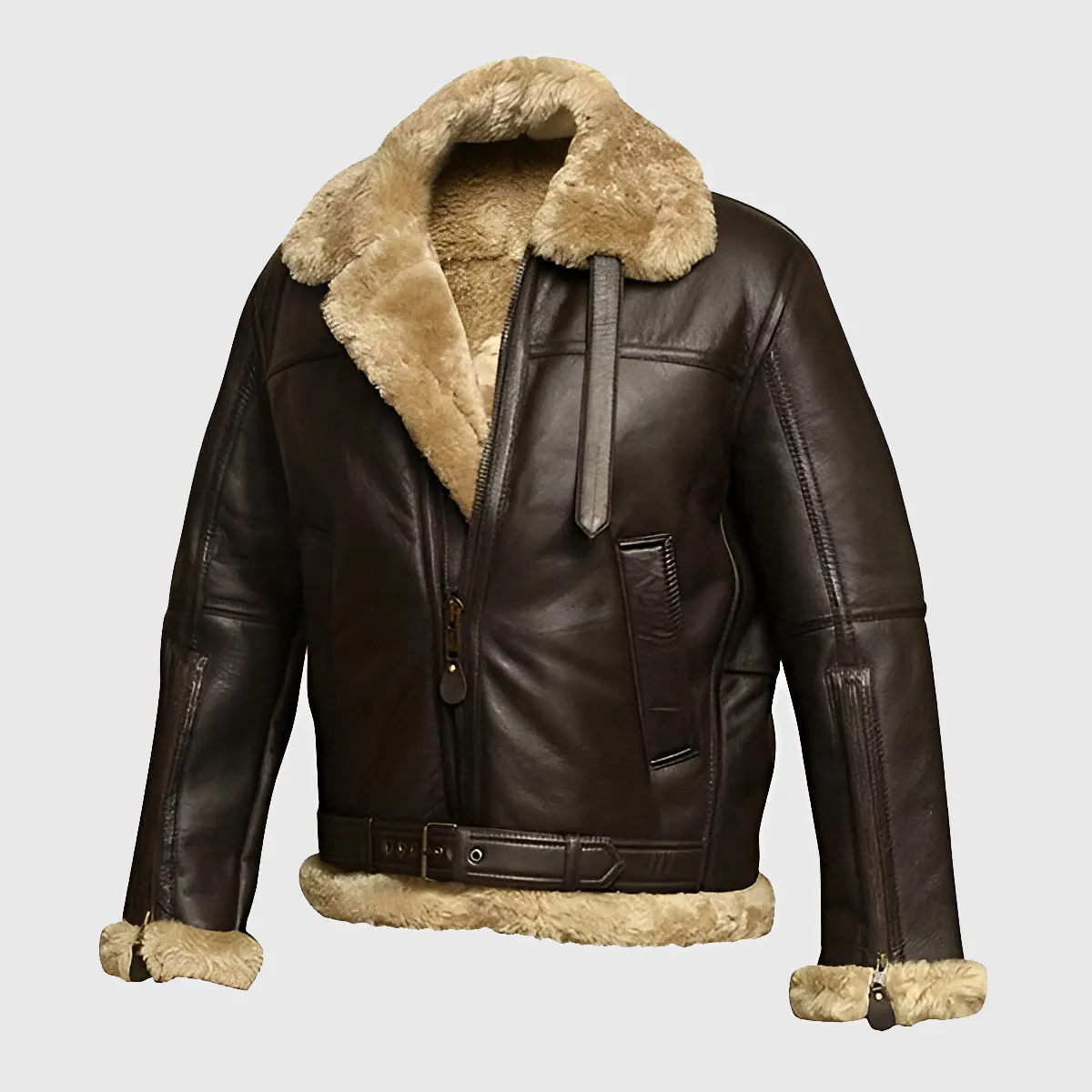 Jones Men’s Brown B-3 Bomber Leather Jacket