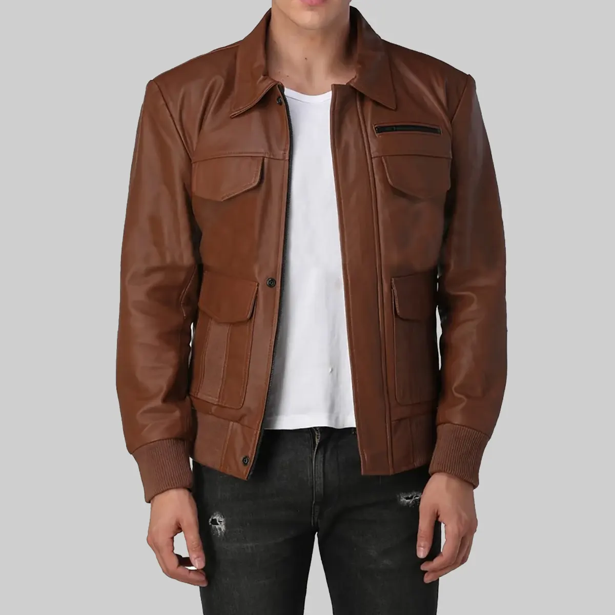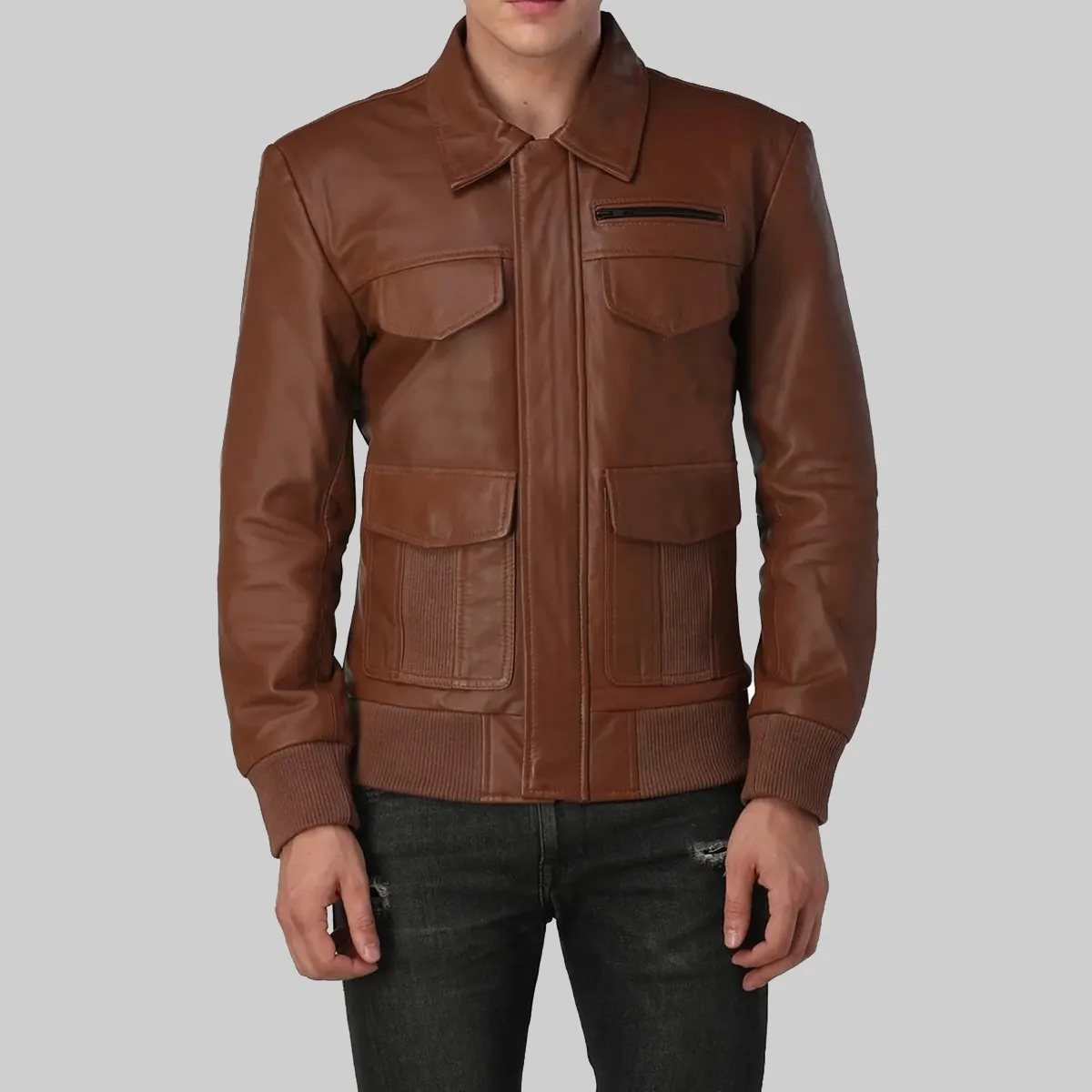 Be the first to review “Justin Mens Brown Bomber Utility Leather Jacket” Cancel reply