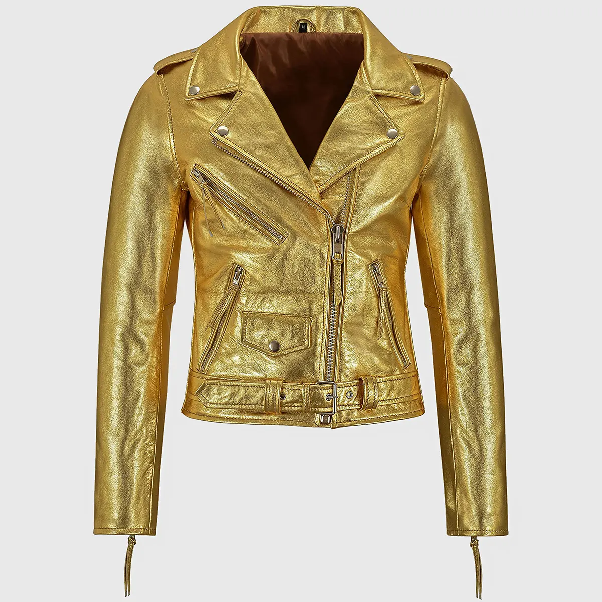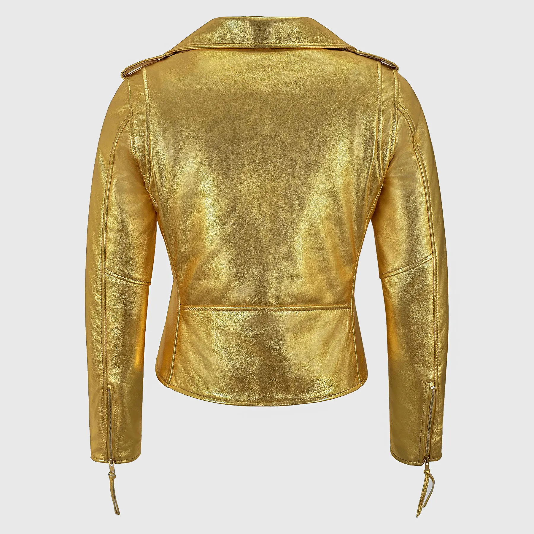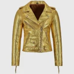 Katherine Women’s Golden Metallic Leather Biker Jacket