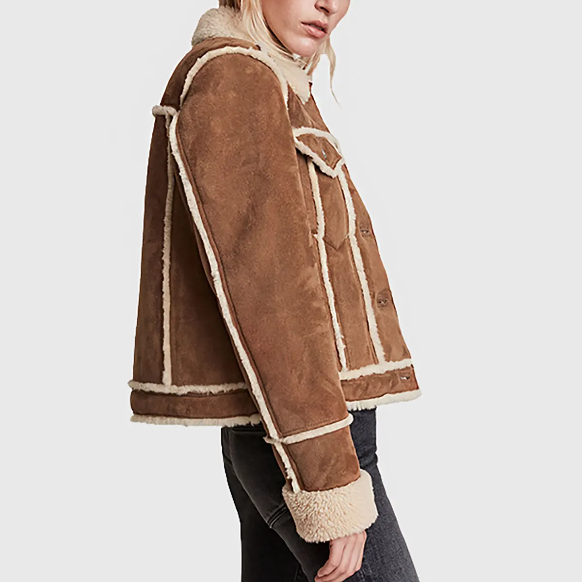 Laura Women’s Brown Shearling Leather Trucker Jacket