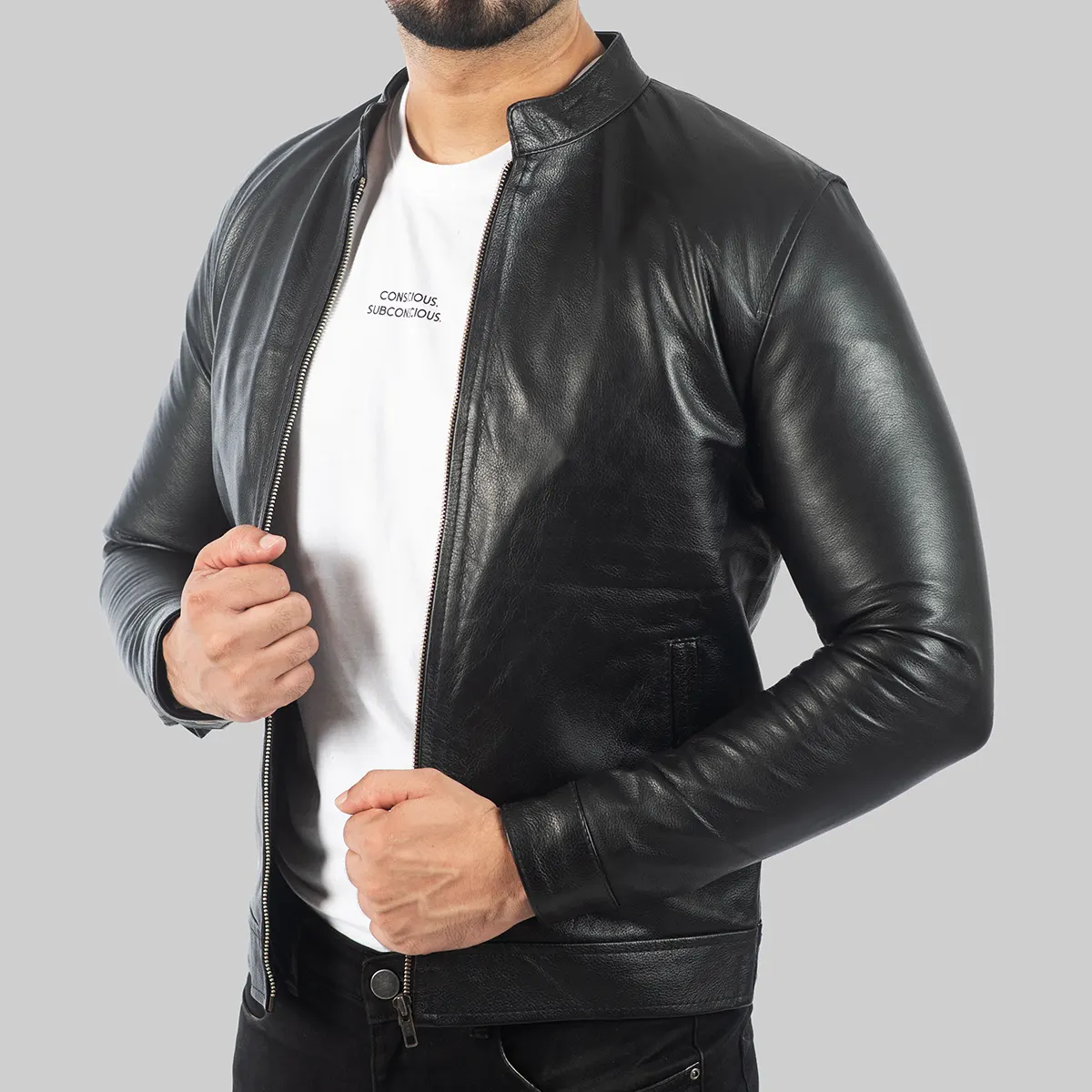 Shop TheLeon Men’s Black Leather Biker Jacket