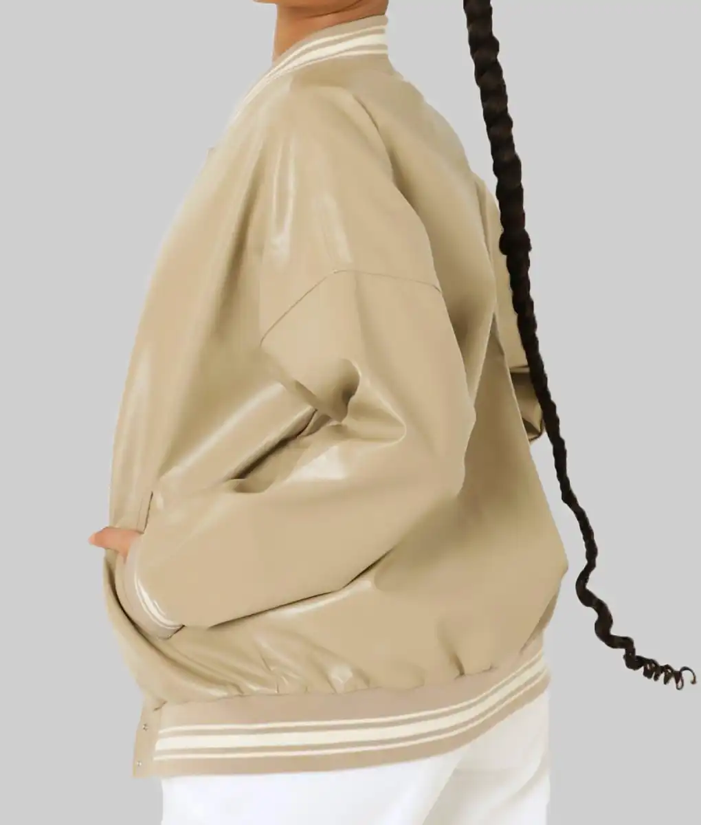 Shop The Louisse Women’s Beige Leather Varsity Jacket