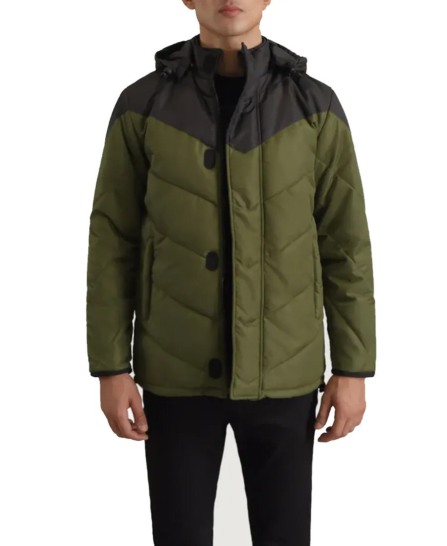 Luka Black And Green Hooded Puffer Jacket
