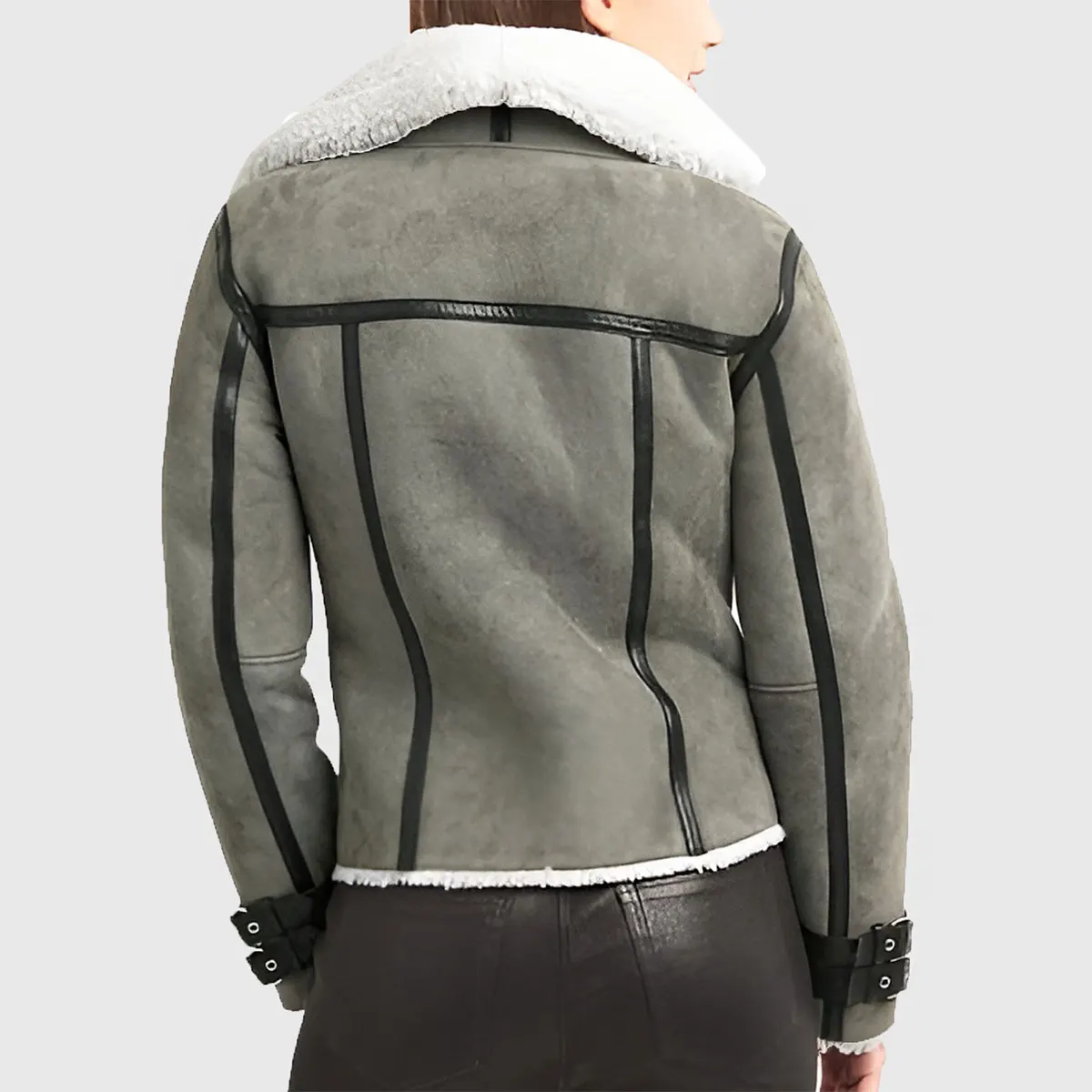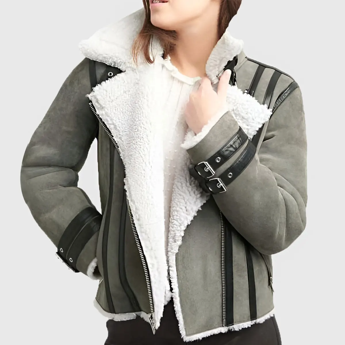 Maggie Women’s Grey B-3 Bomber Suede Jacket