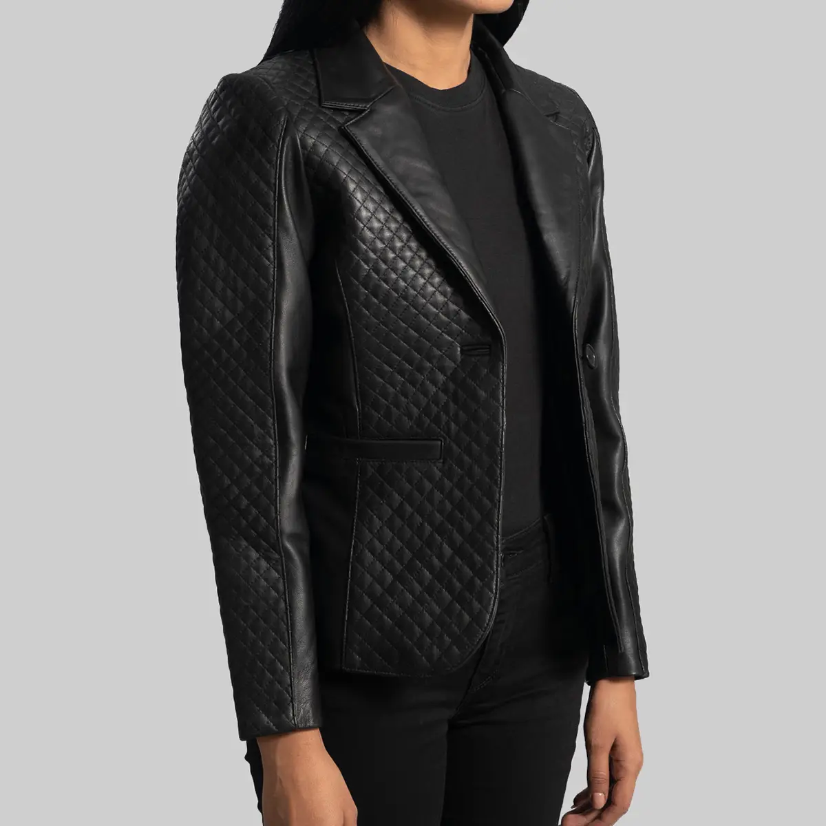 Mary Women’s Quilted Black Leather Blazer