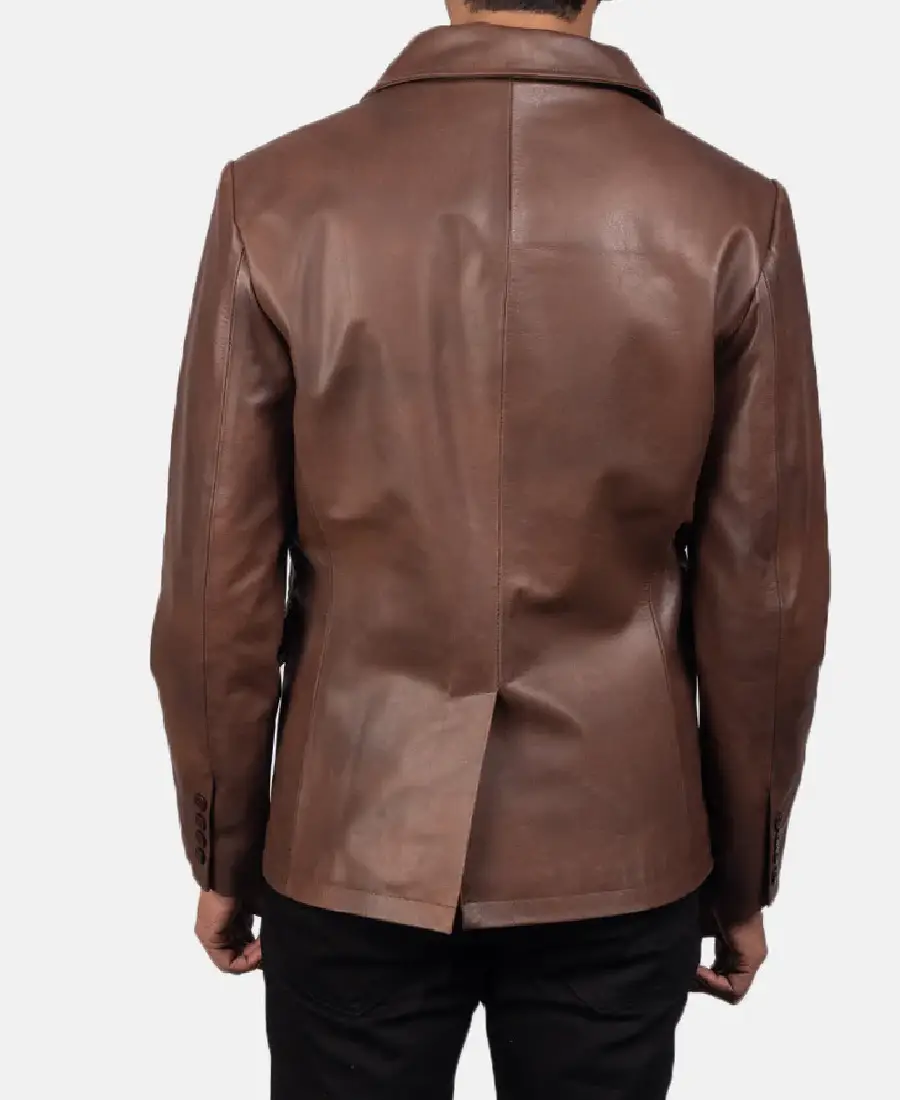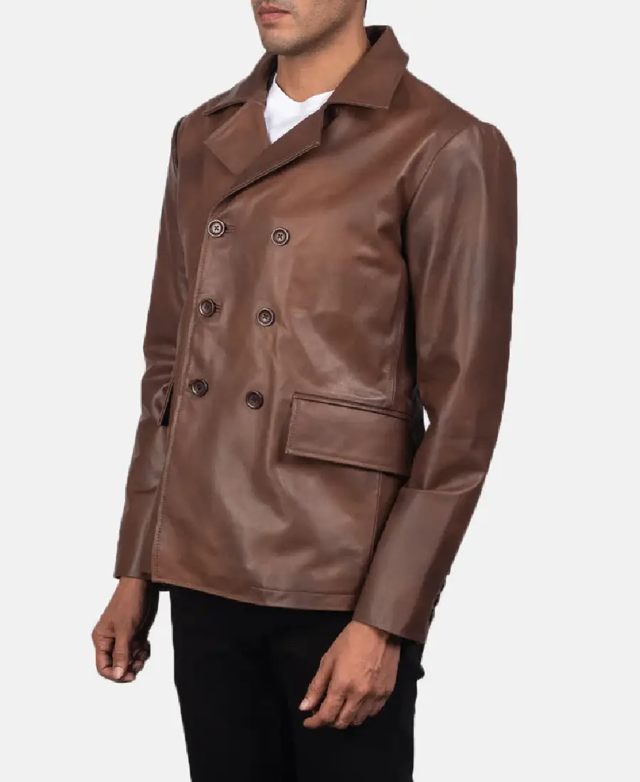 Men Bailey Brown Leather Peacoat
