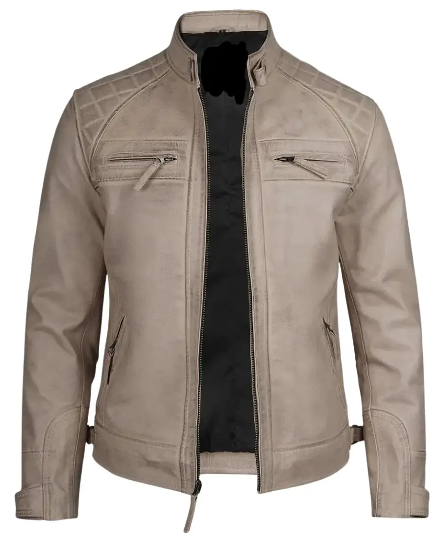 Be the first to review “Men Beige Quilted Cafe Racer Leather Jacket” Cancel reply