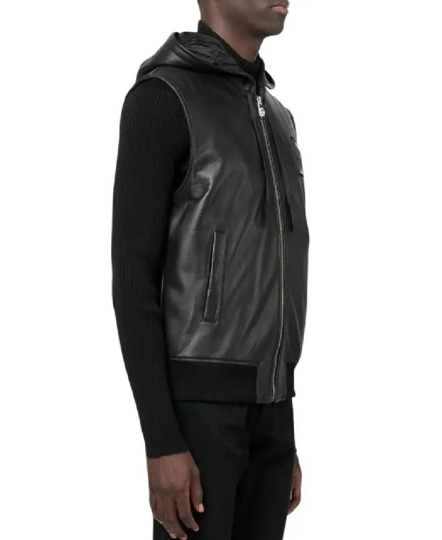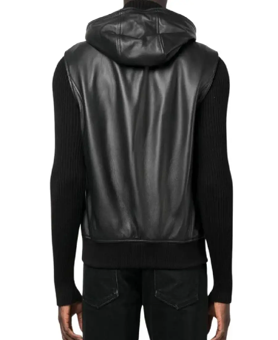 Shop The Men Black Hooded Leather Vest