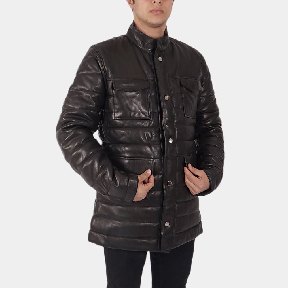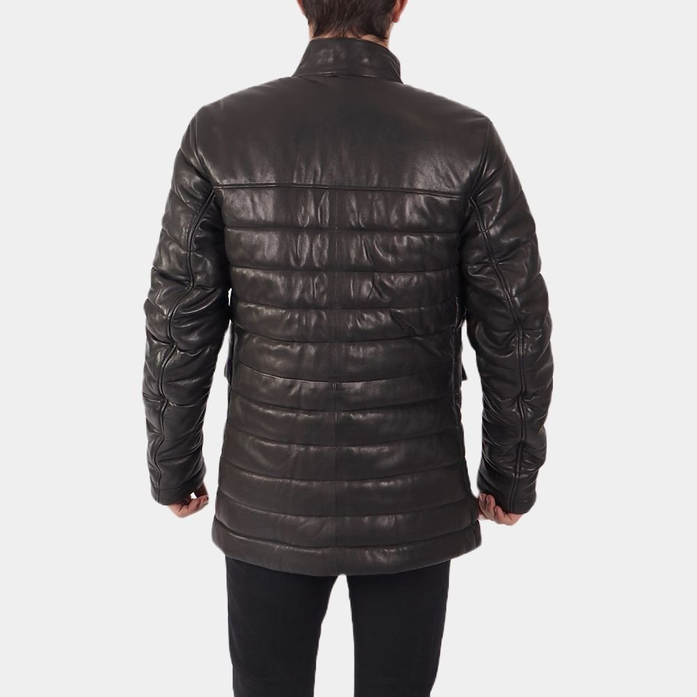 Shop The Men Black Puffer Leather Jacket