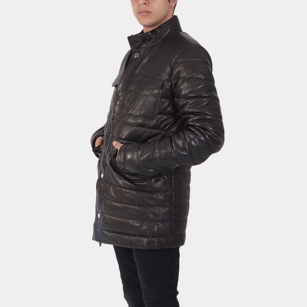 Men Black Puffer Leather Jacket