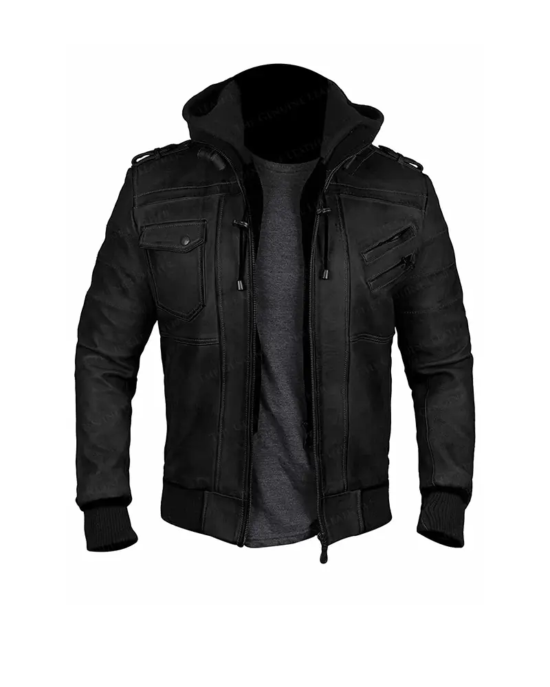 Be the first to review “Men Bomber Hood Removable Leather Jacket” Cancel reply