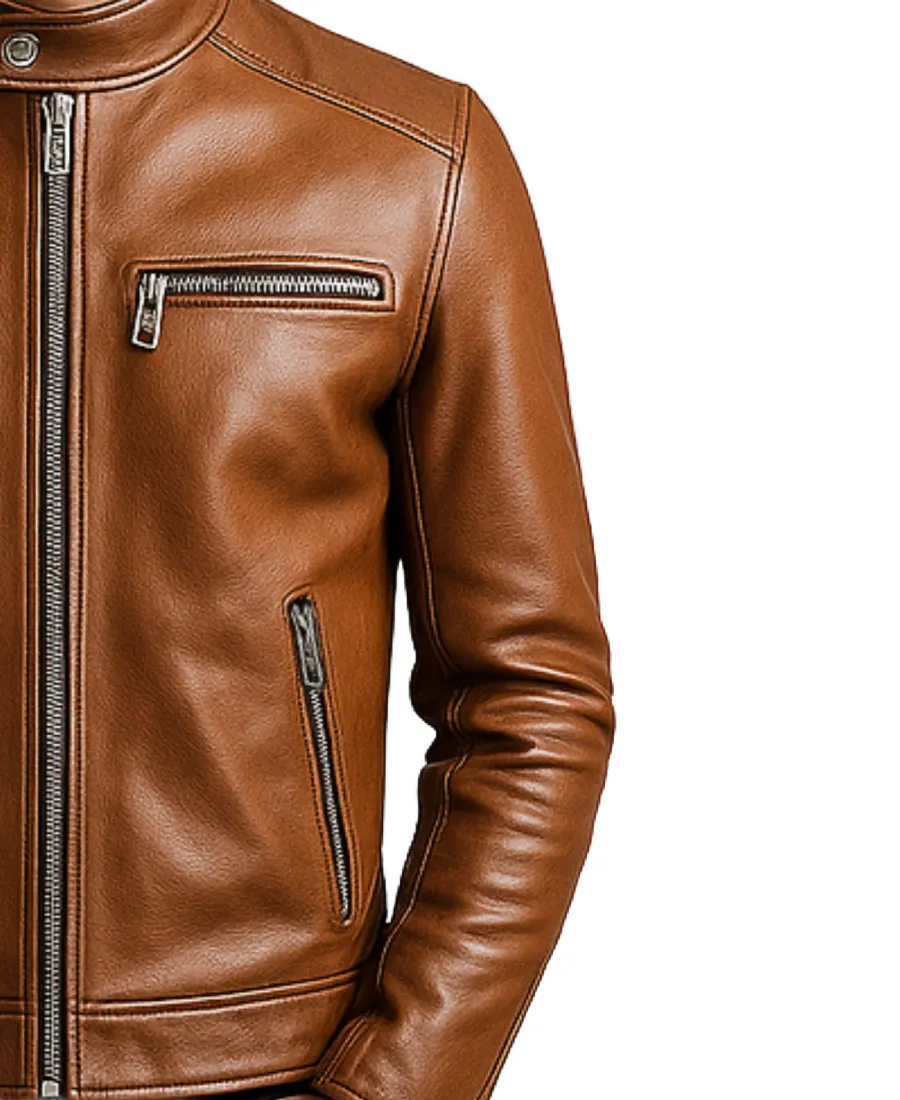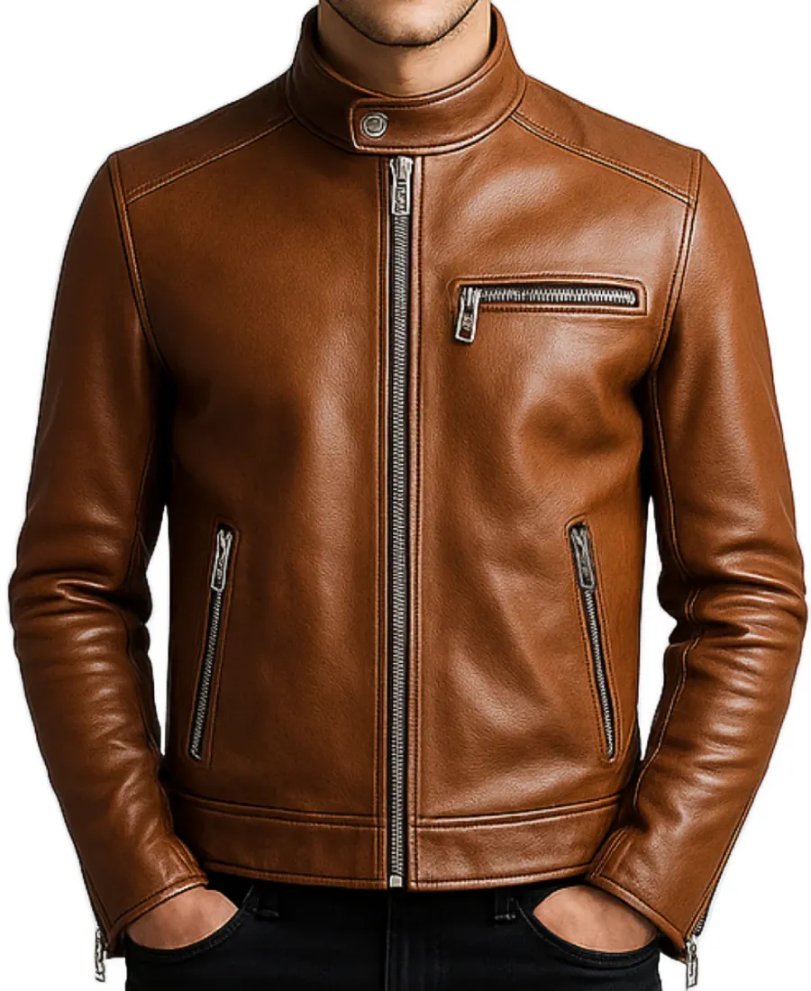 Men Brown Slim Fit Leather Jacket