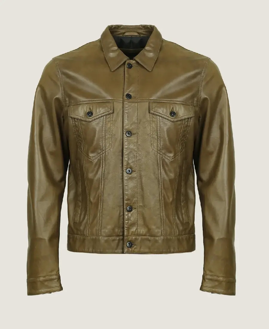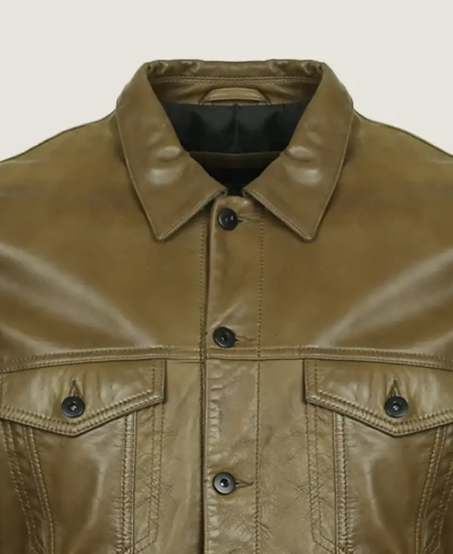Shop The Men Classic Olive Shirt Style Leather Jacket