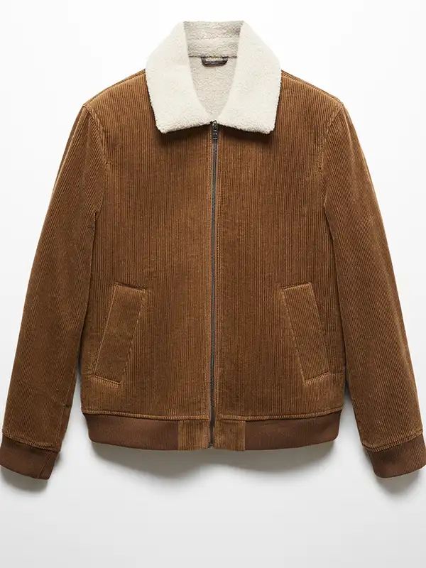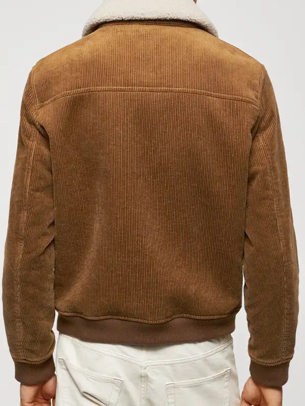 Men Corduroy Brown Shearling Jacket