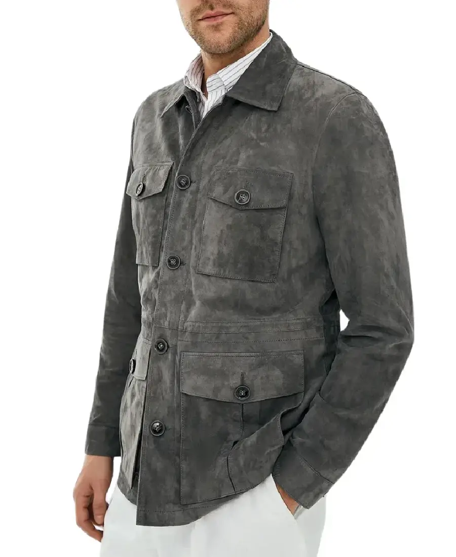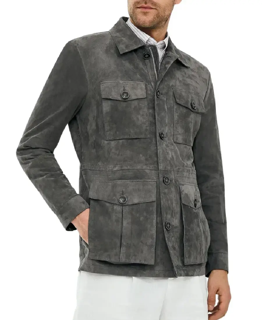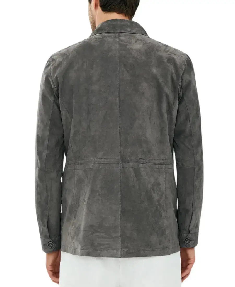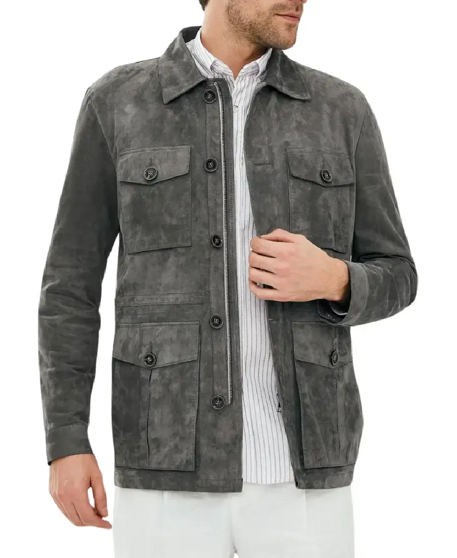 Shop The Men Dark Grey Suede Leather Shirt Jacket