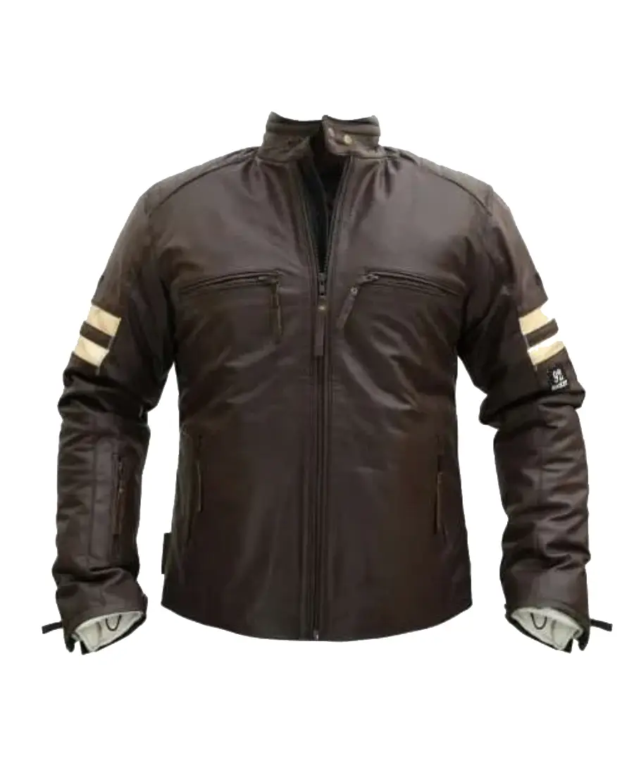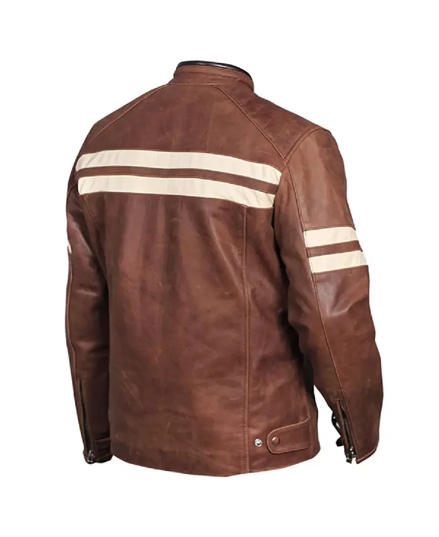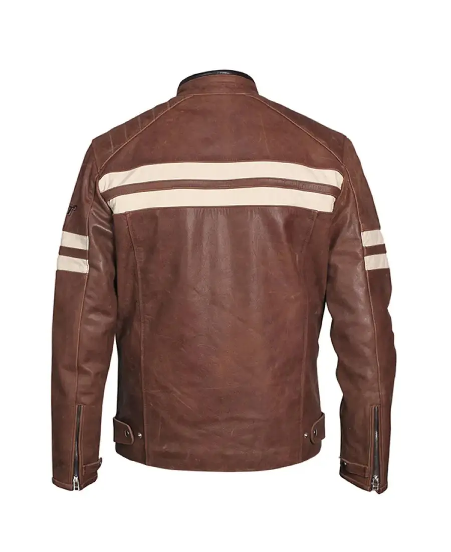 Men Distressed Cruiser Stripes Leather Jacket