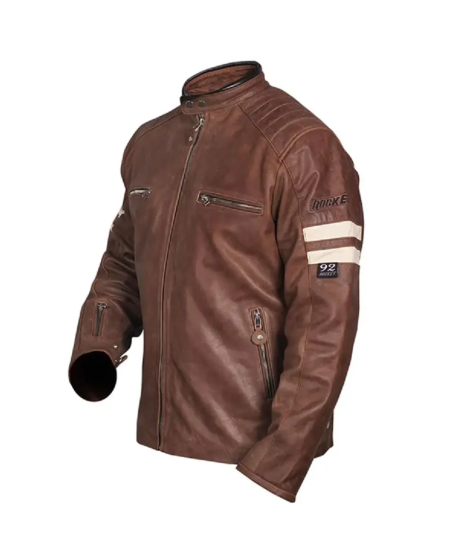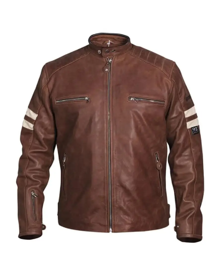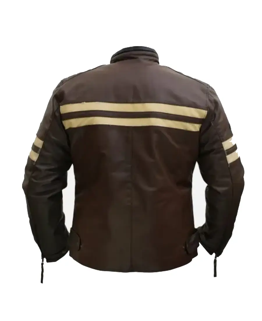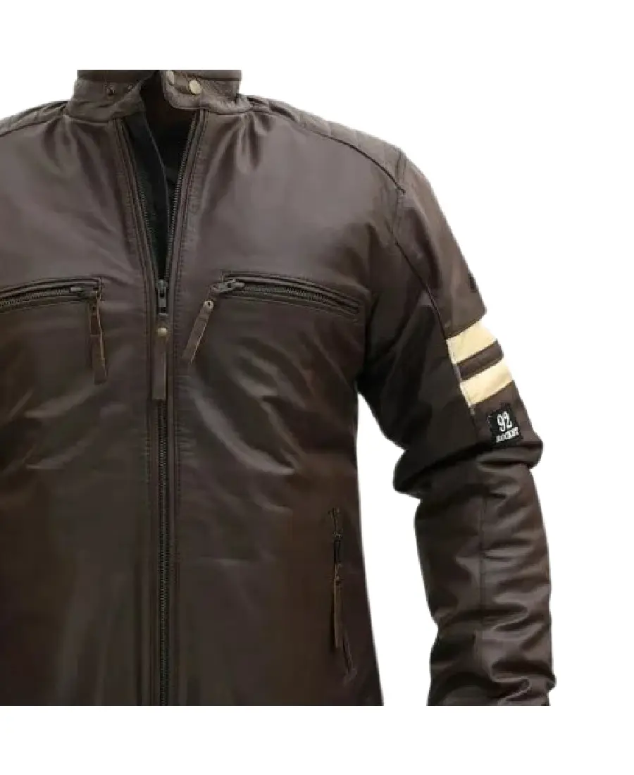 Men Distressed Cruiser Stripes Leather Jacket