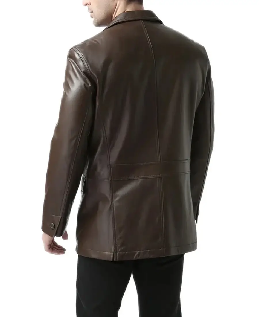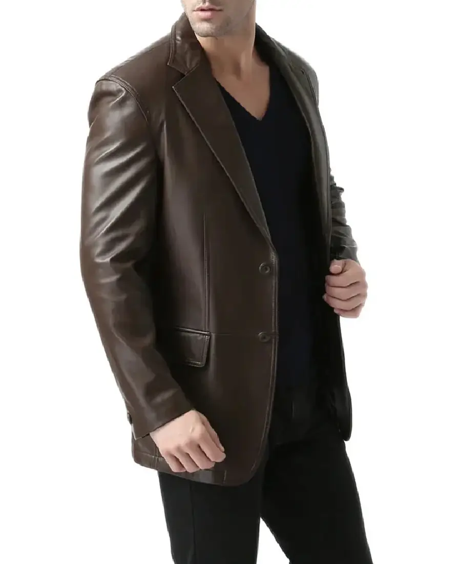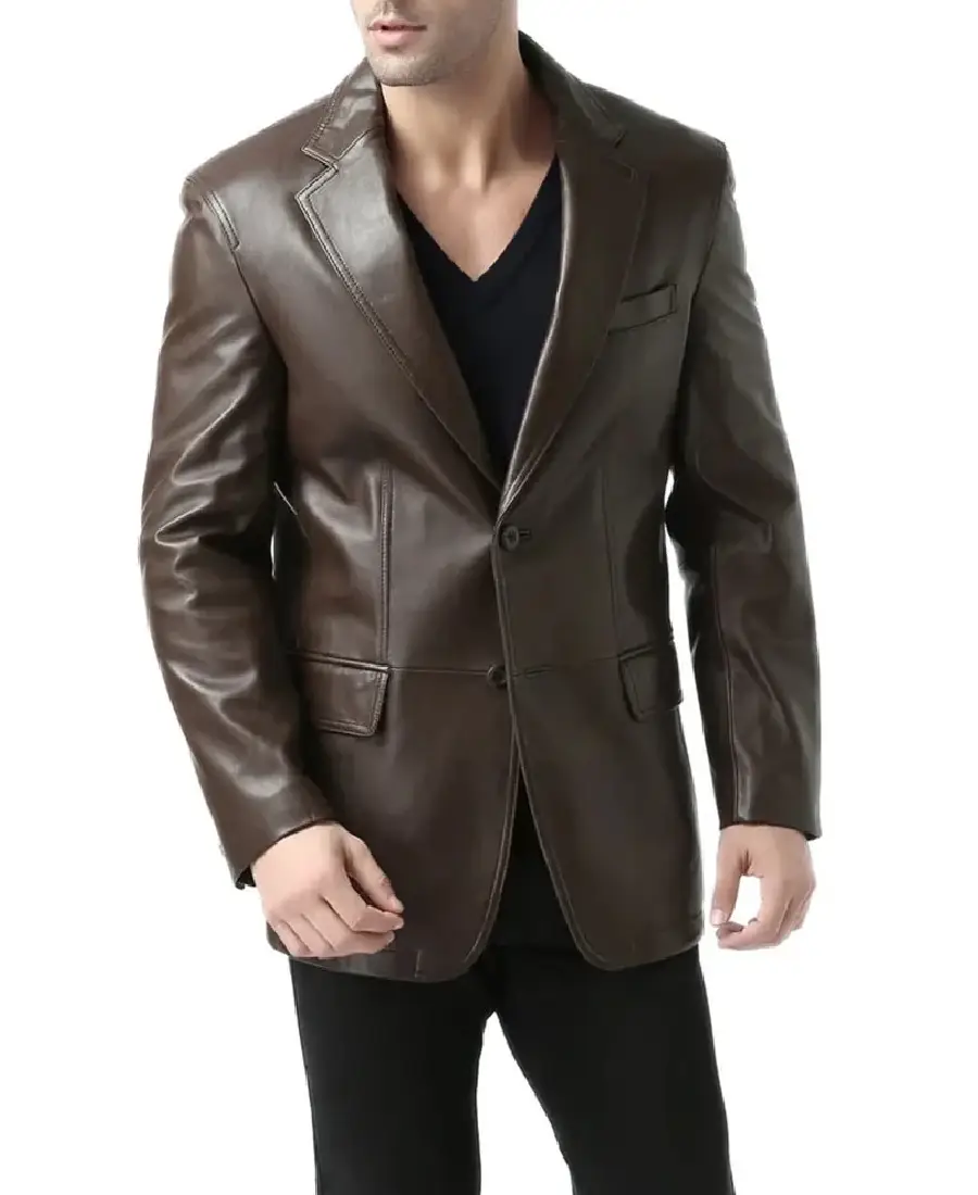 Men Espresso Brown Leather Blazer