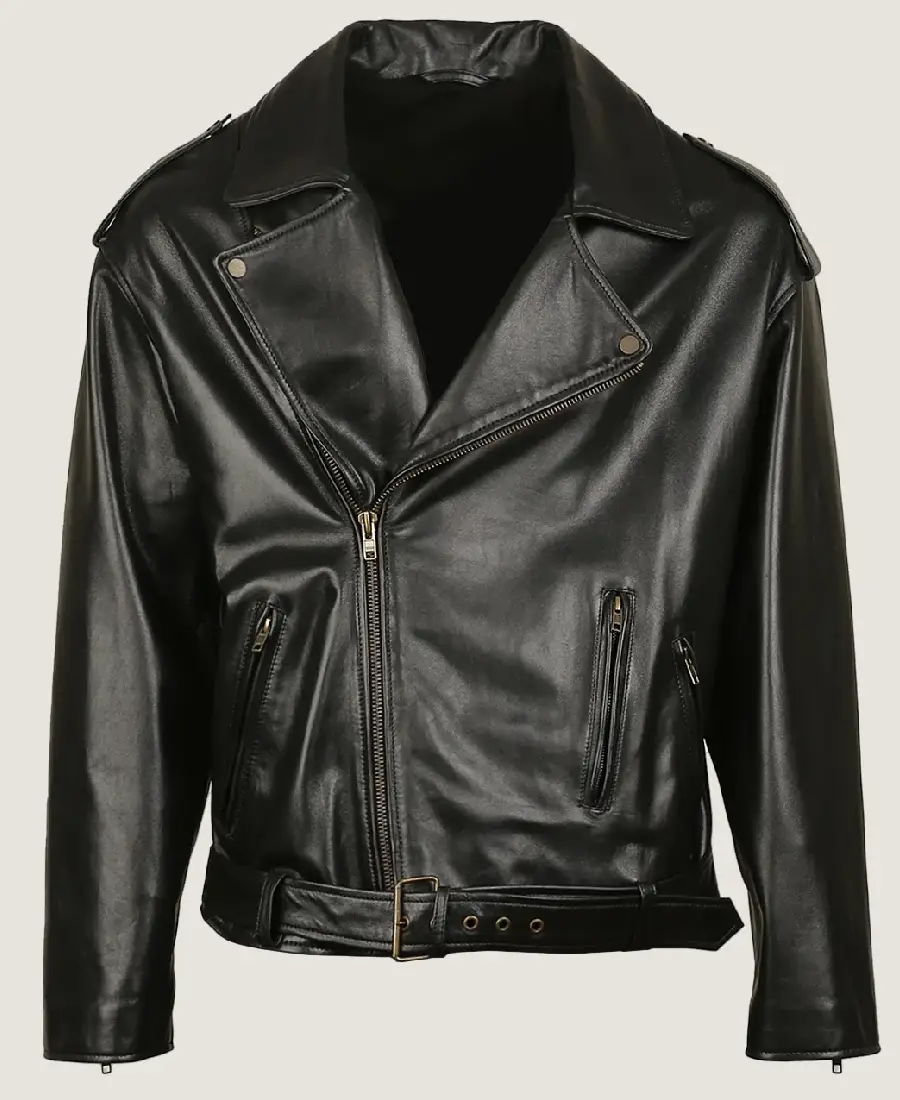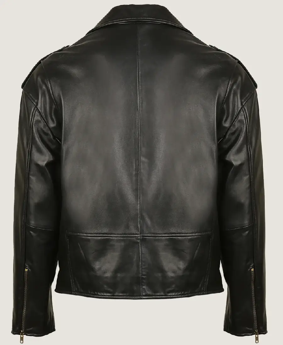 Shop The Men Plain Black Biker Vegan Leather Jacket