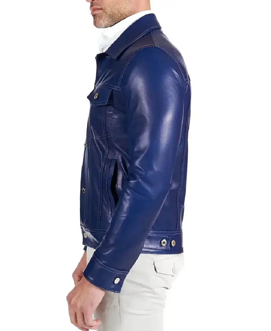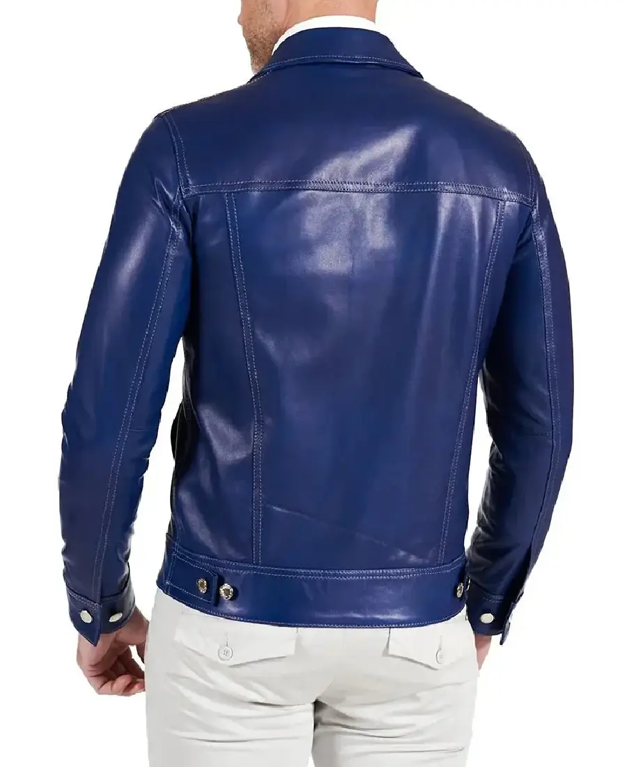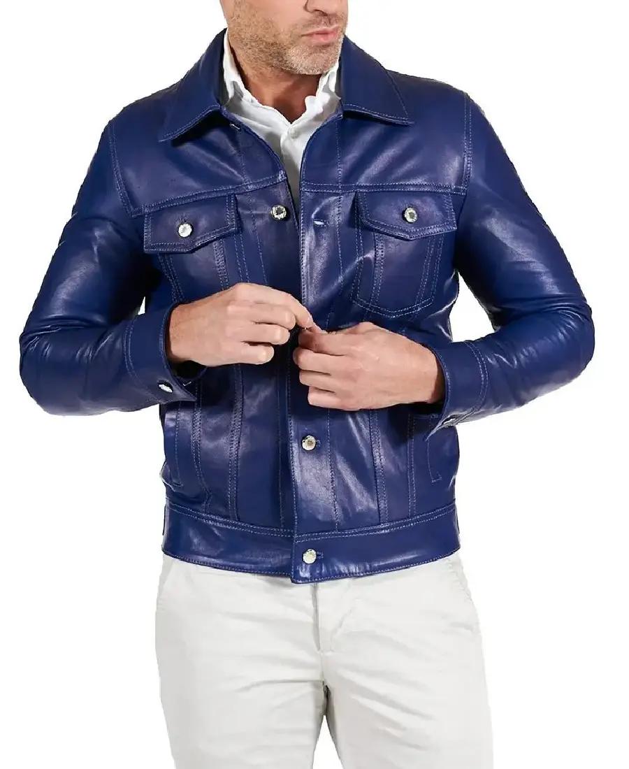 Shop The Men Shirt Style Blue Real Lambskin Leather Jacket