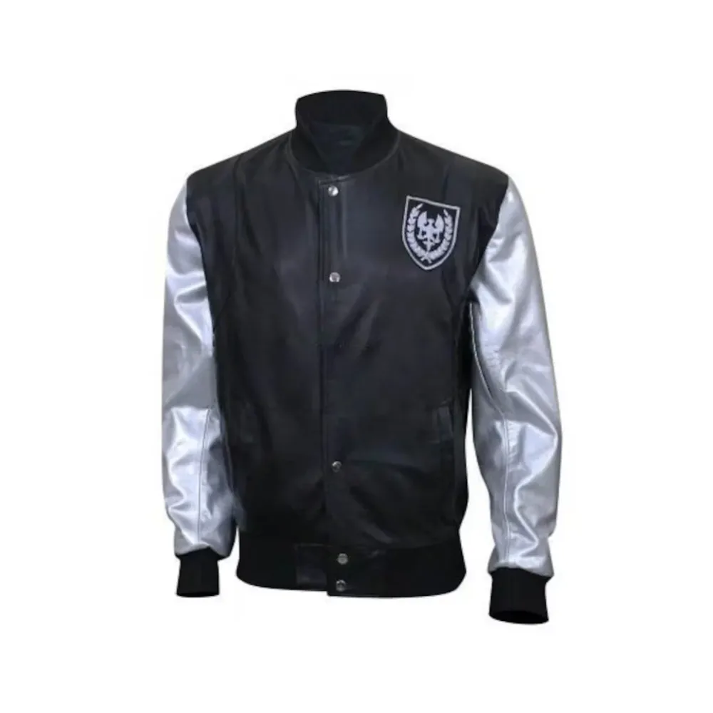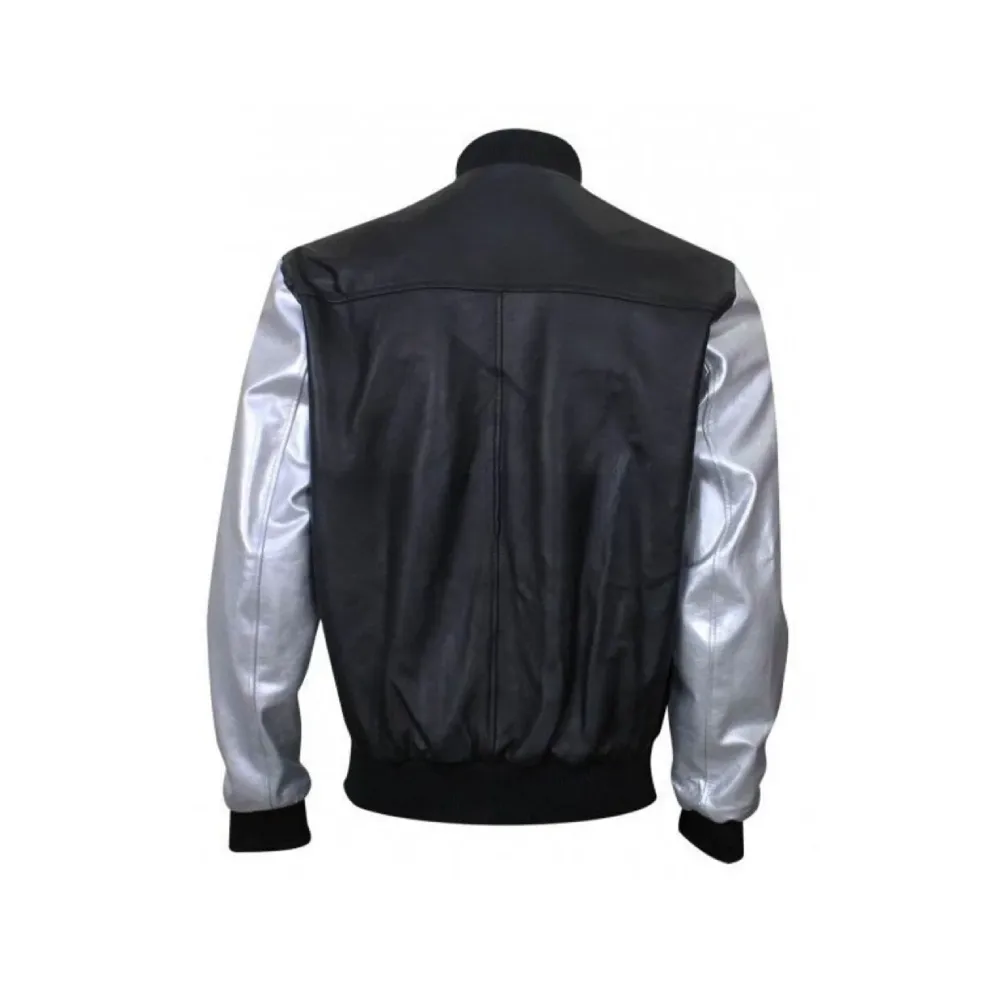 Men Silver Sleeves Bomber Rexine Jacket
