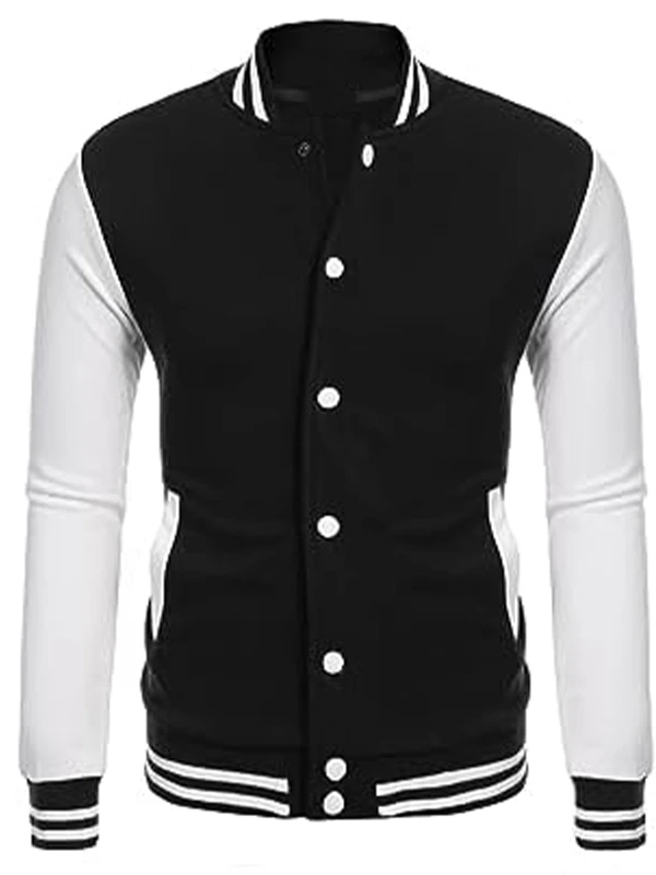 Men Slim Fit Causal Black and White Varsity Jacket