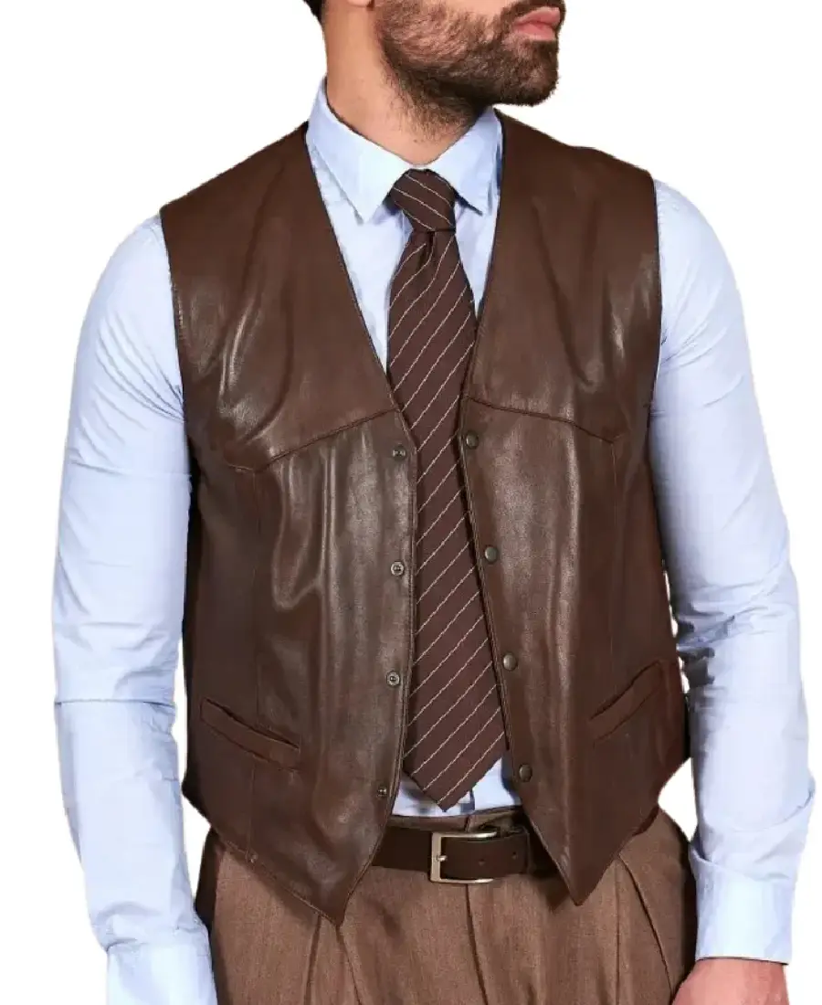 Men Vintage Brown Leather Vest