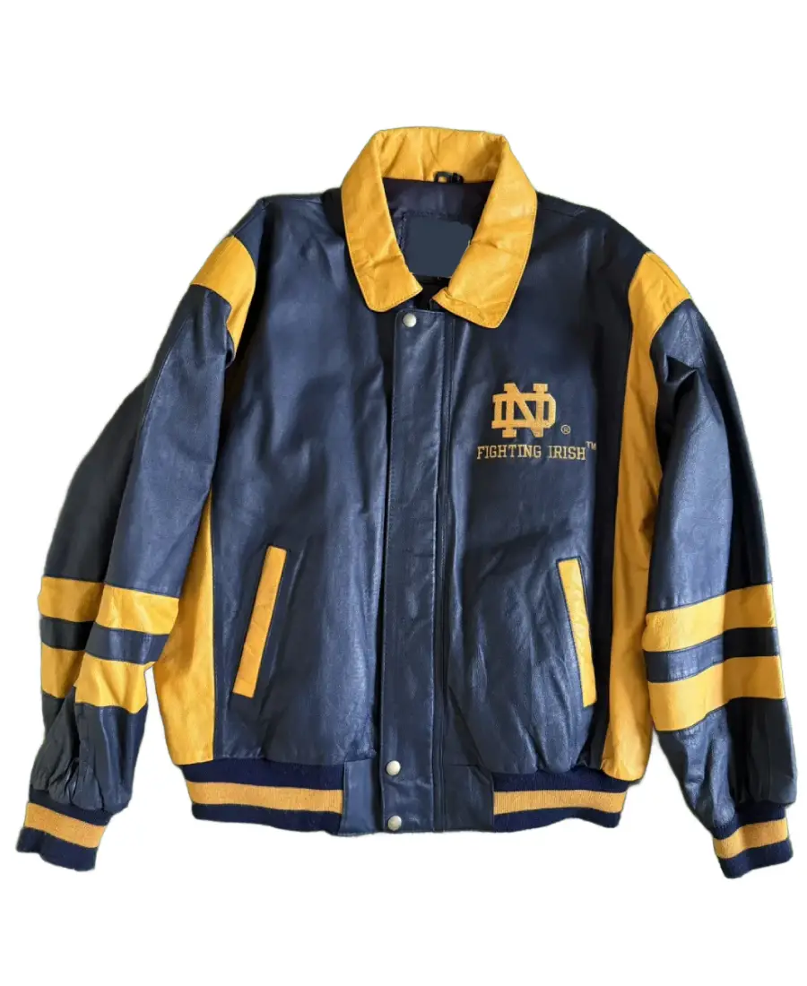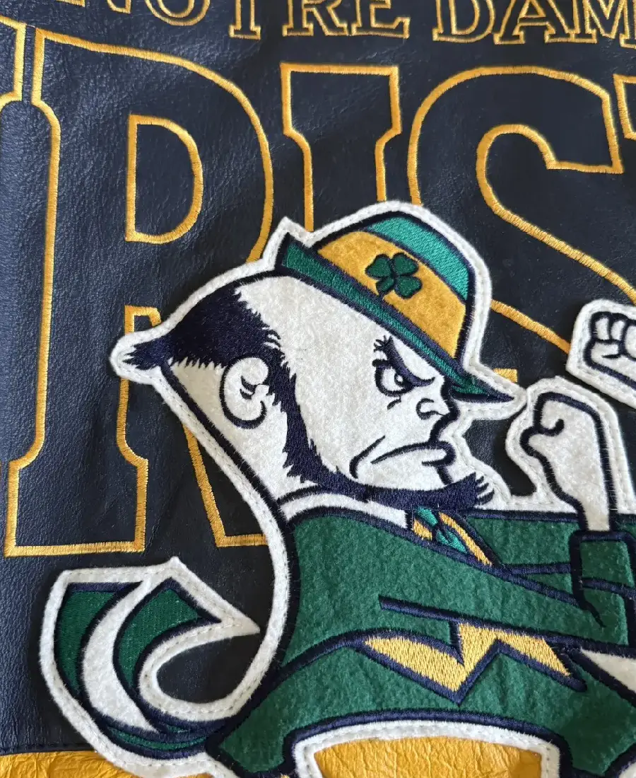 Men Vintage Notre Dame Fighting Leather Jacket