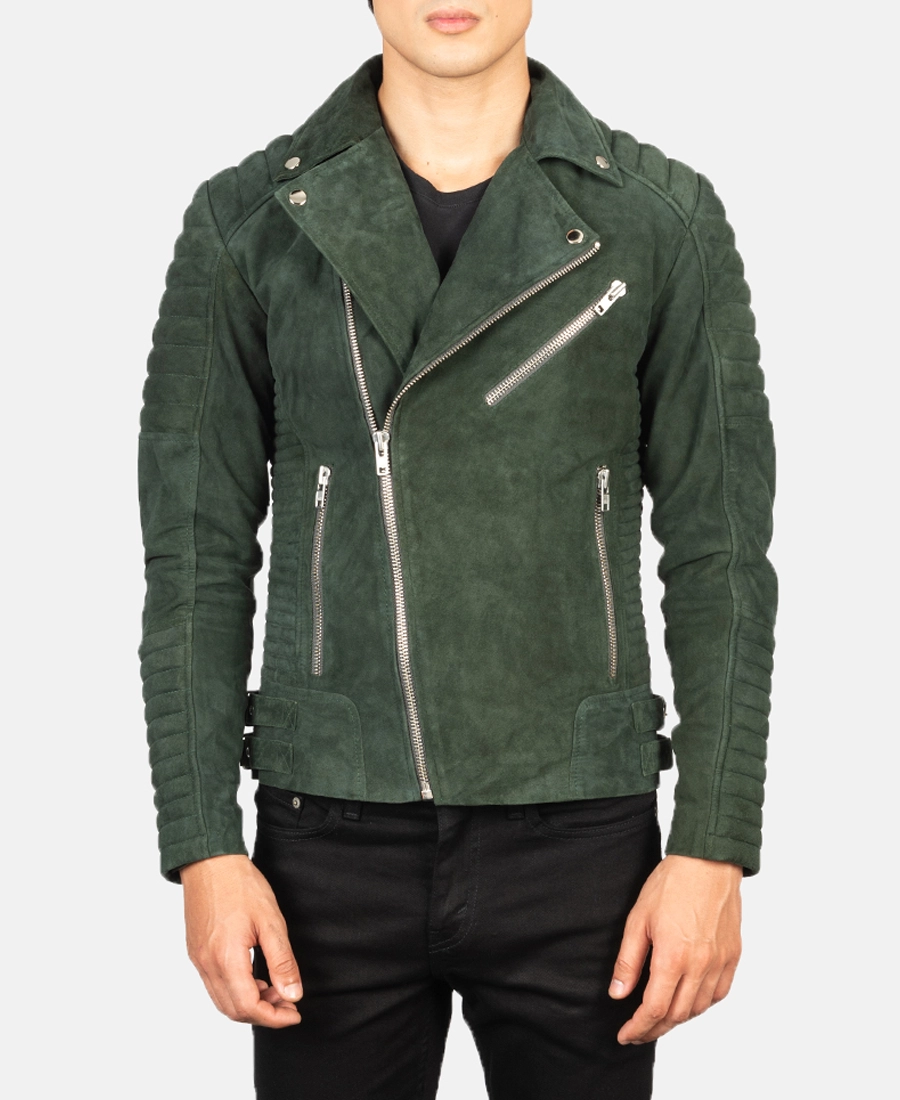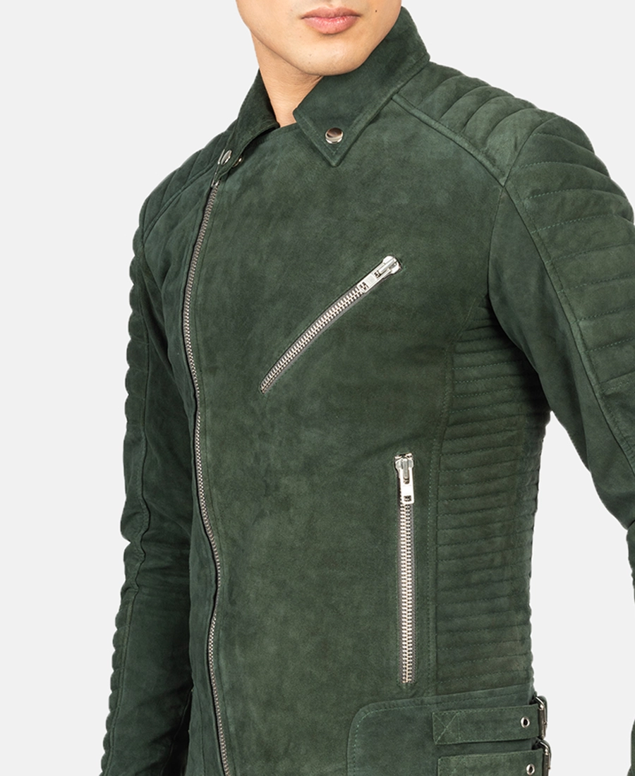 The Men’s Armand Suede Biker Jacket combines a soft suede leather exterior with a comfortable viscose lining inside that helps maintain a balanced temperature. It features a lapel style collar that adds a classic biker touch while zipped cuffs allow for adjustable sleeve openings for a better fit. The front zipped closure provides a secure way to wear the jacket and makes it easy to put on or take off. Full-length sleeves offer complete arm coverage and protection. This jacket includes one chest pocket two side pockets for convenience and two inner pockets for additional secure storage. Available in brown and green colors. The suede material gives the jacket a unique texture and appearance making it an appealing choice for those who want something Cool environment.