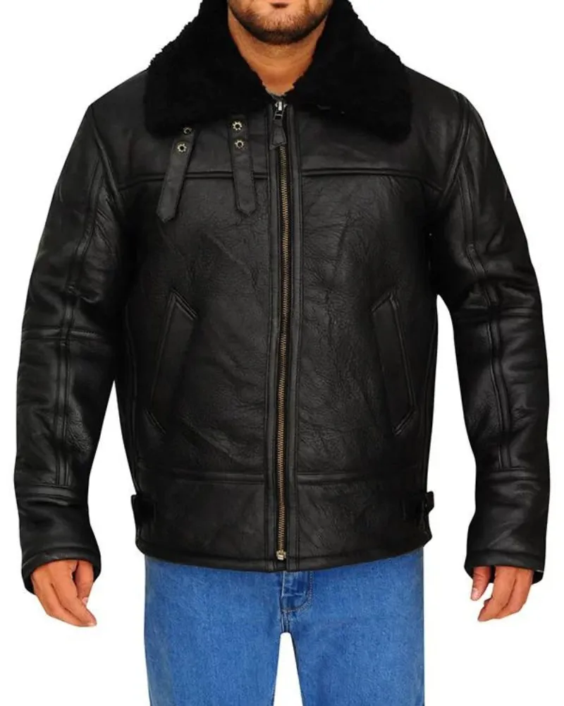 Mens B3 Aviator Bomber Black Leather Jacket