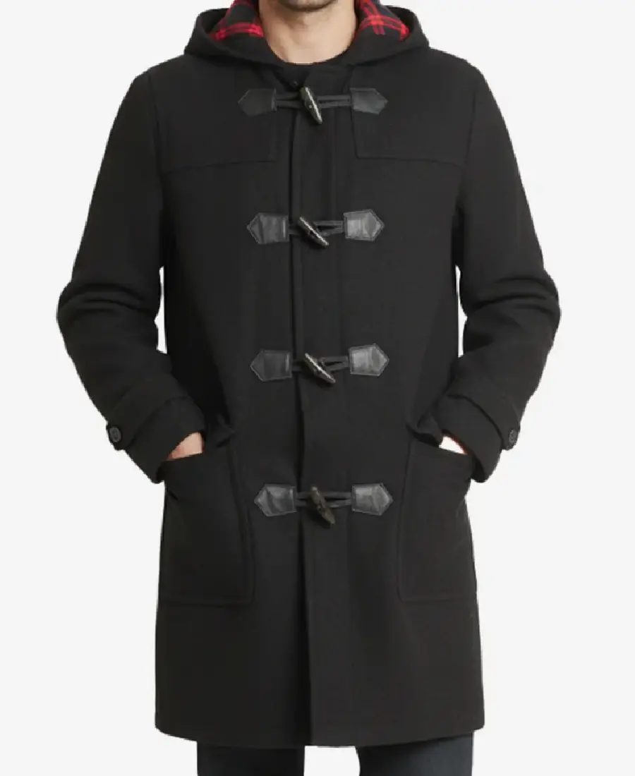 Men’s Bennie Black Hooded Duffle Wool Coat