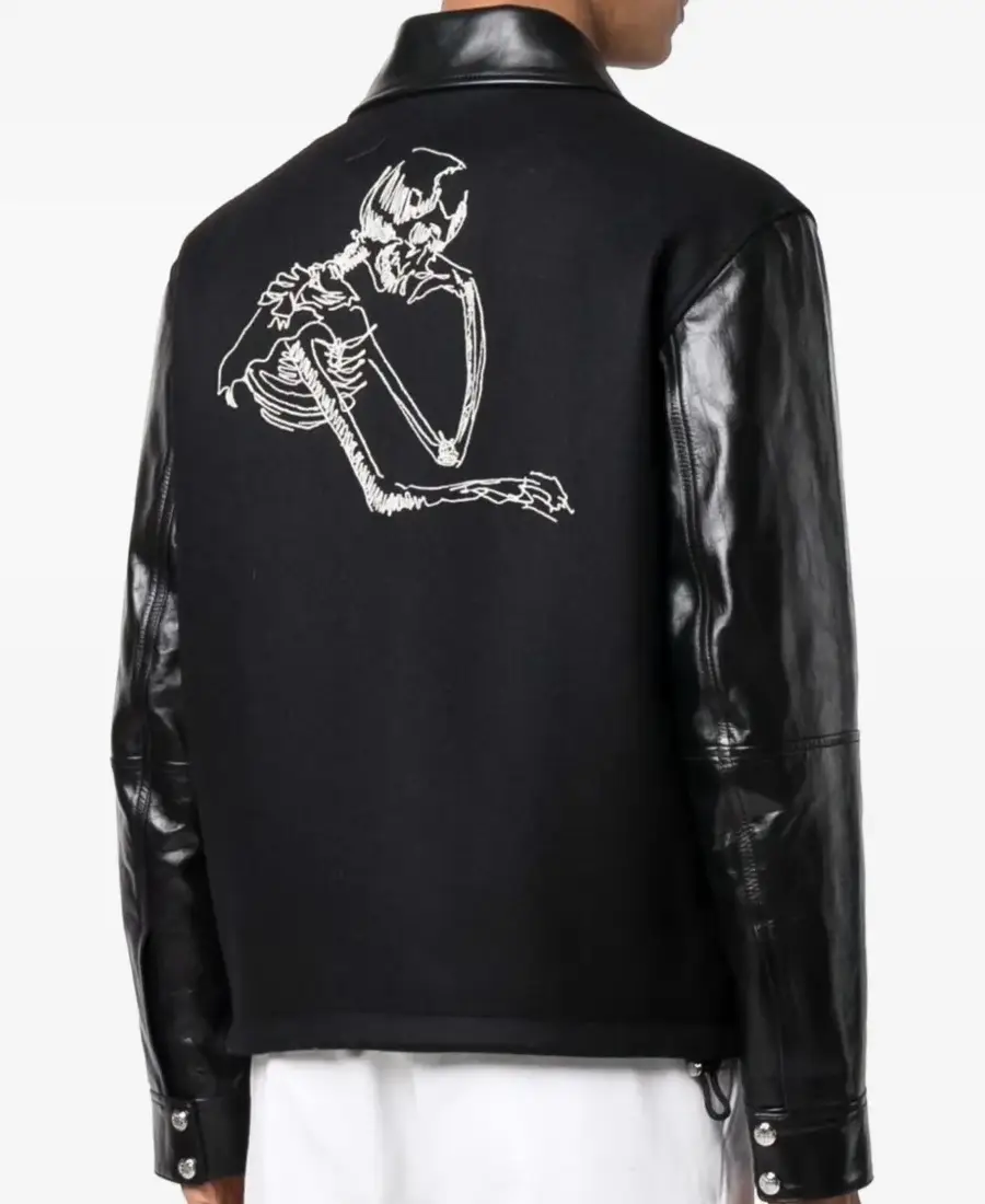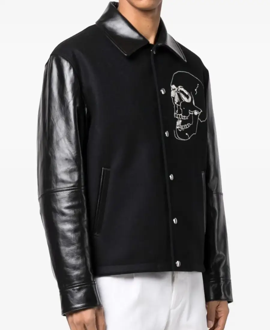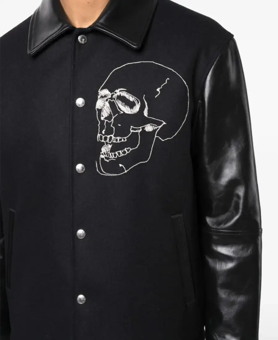 Men’s Black Embroidered Skull Varsity Jacket