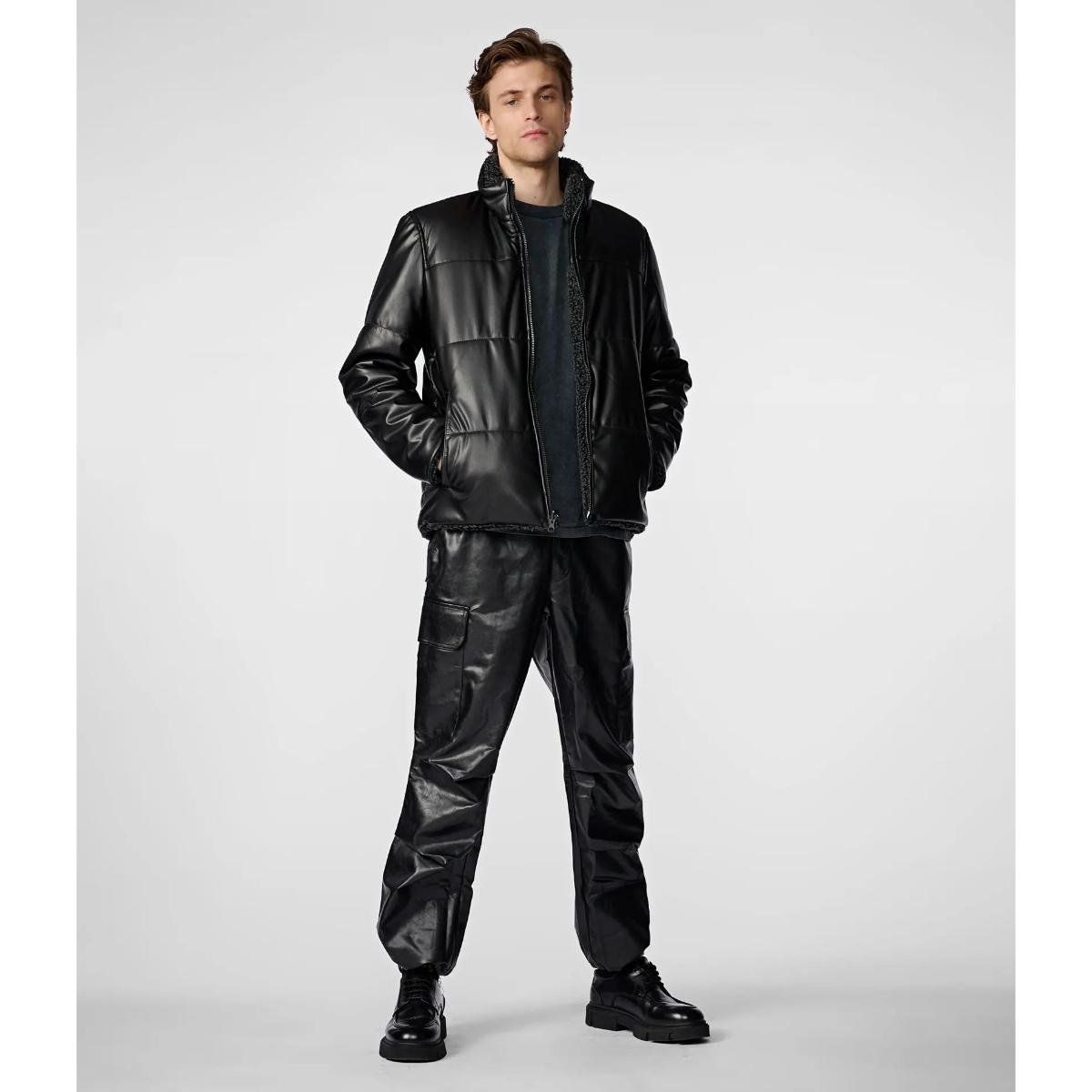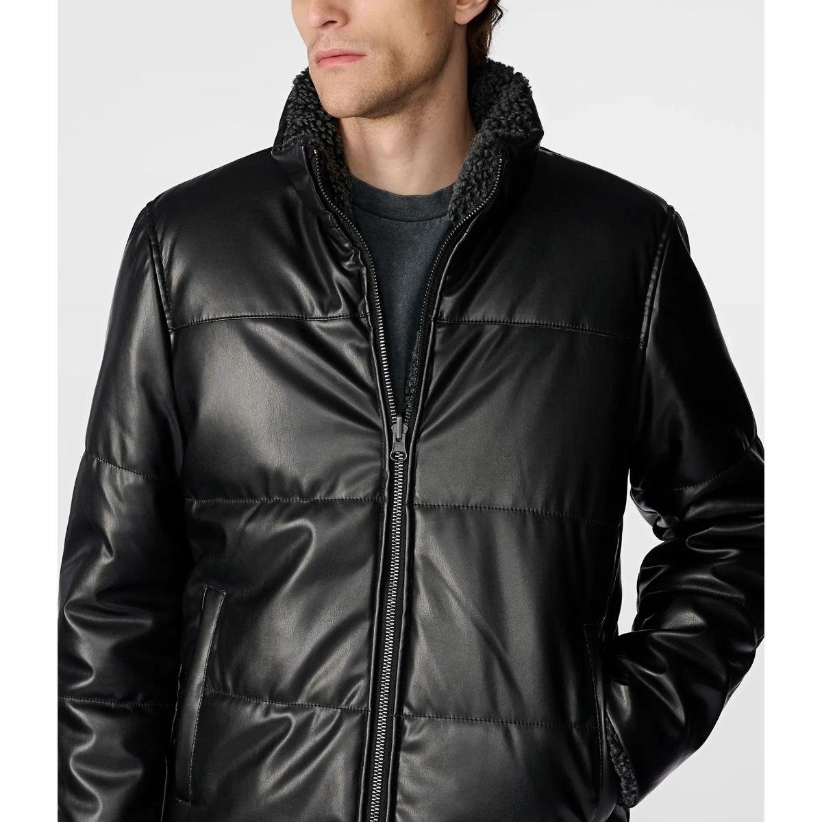 Shop The Men’s Black Leather Sherpa Puffer Jacket