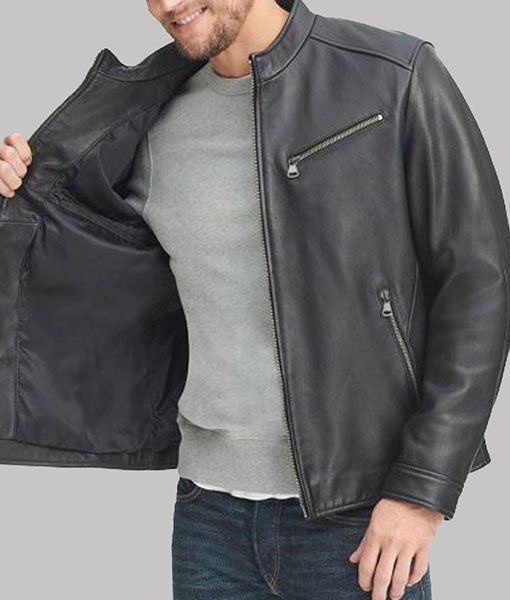 Shop The Men’s Black Leather Stand-up Collar Biker Jacket