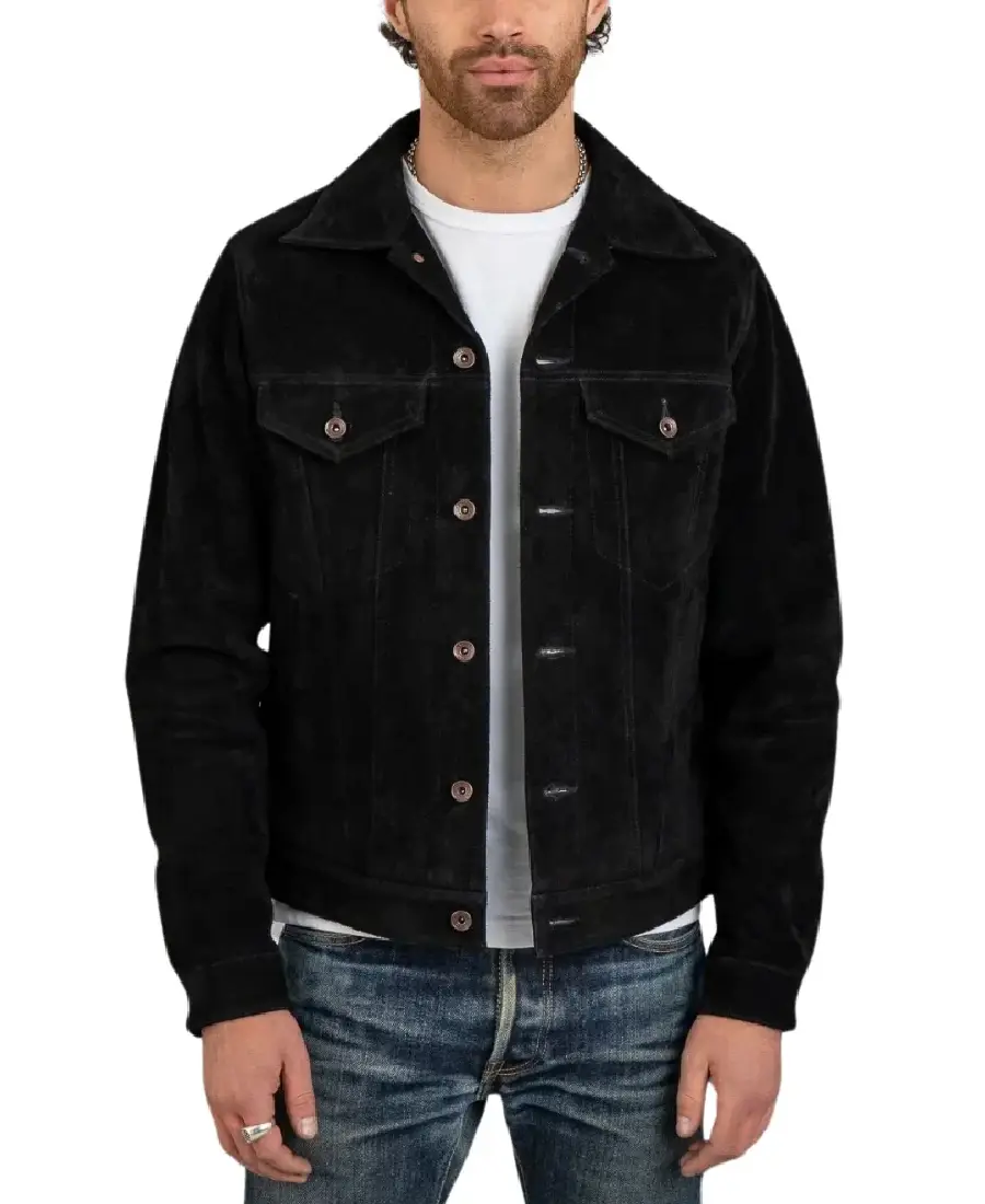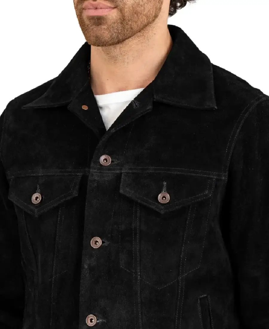 Men’s Black Suede Trucker Jacket