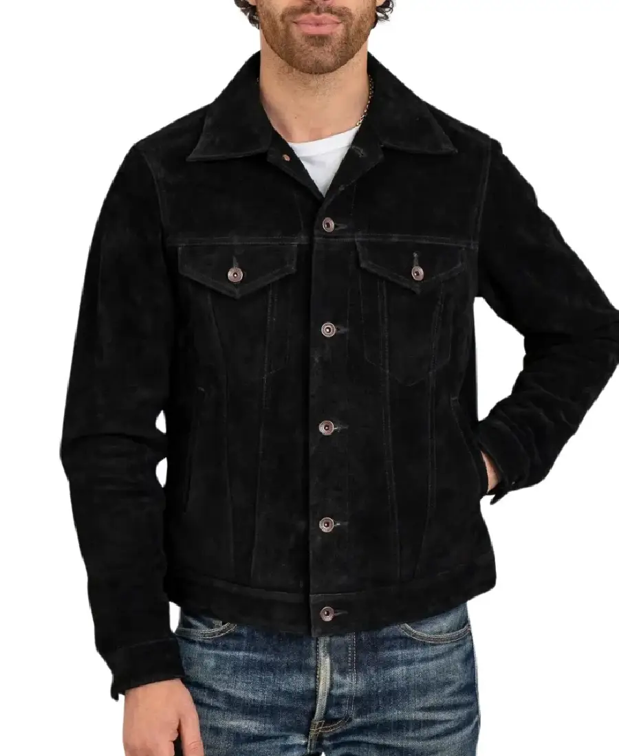 Shop The Men’s Black Suede Trucker Jacket