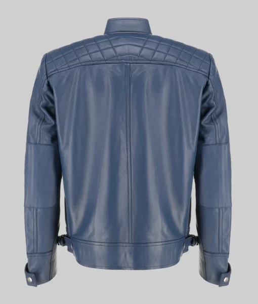 Shop The Men’s Blue Cafe Racer Quilted Biker Leather Jacket