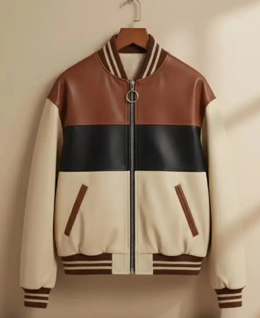 Shop The Men’s Brown and White Cowhide Leather Jacket