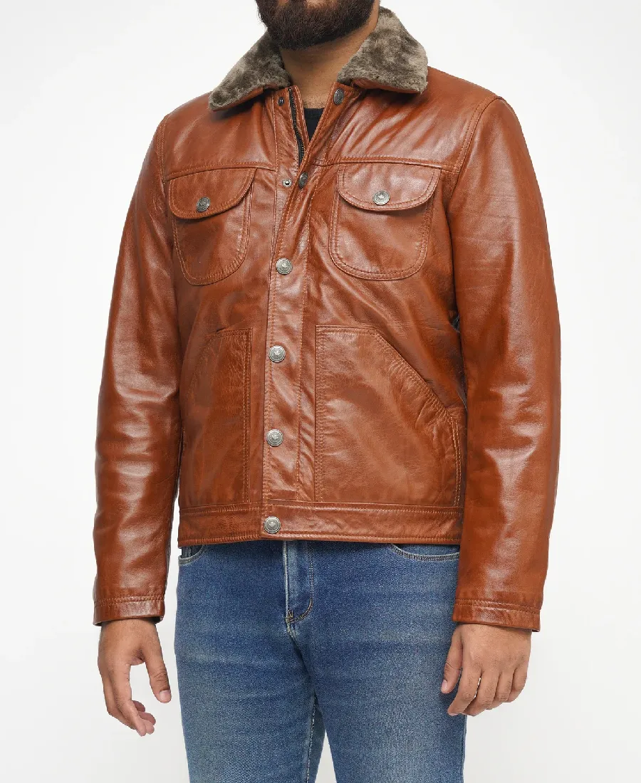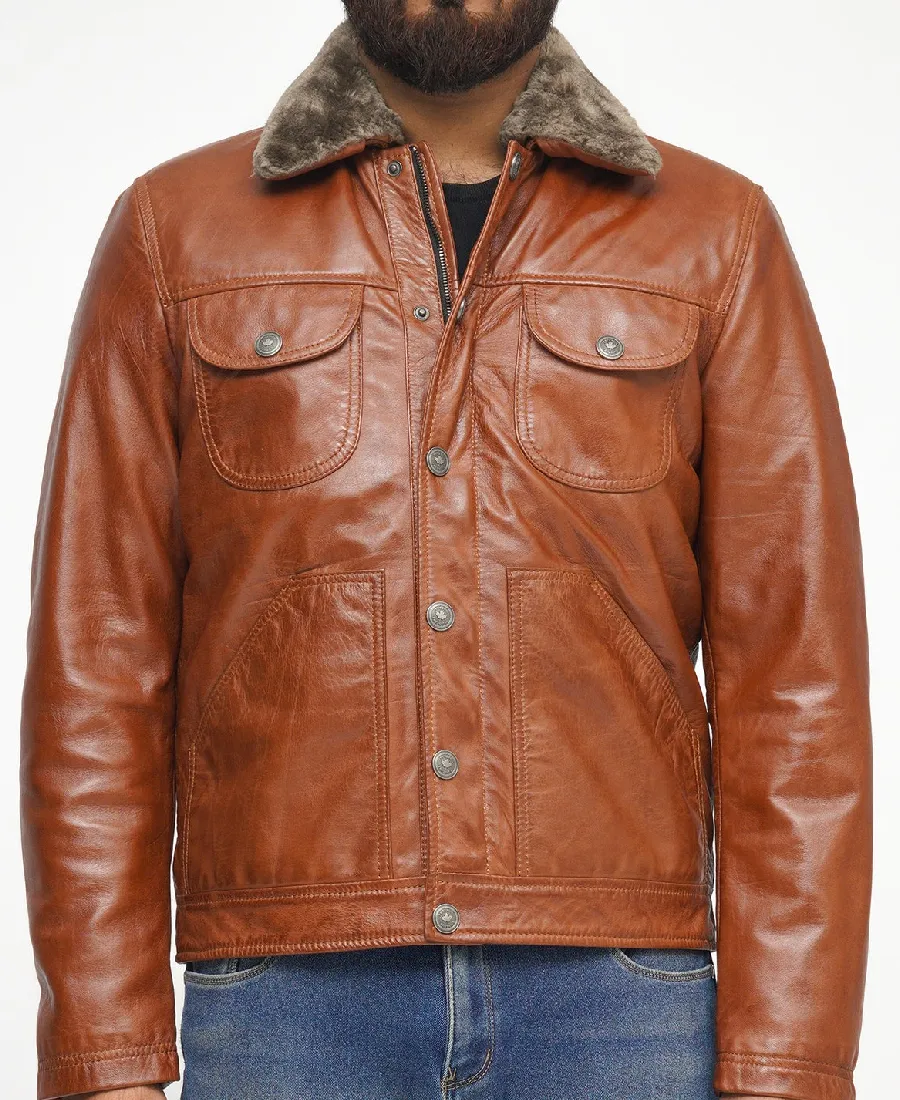 Shop The Men’s Brown Fur Collar Leather Jacket