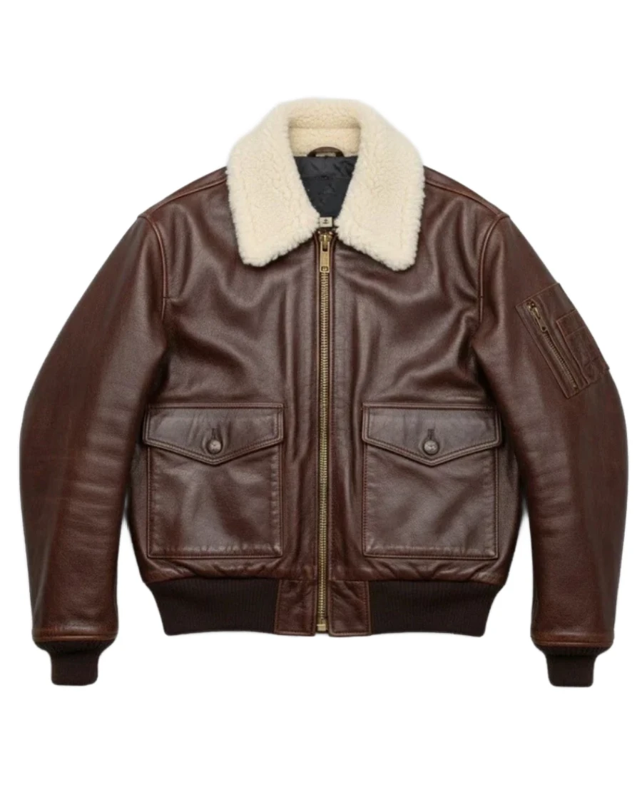 The Men’s Brown Shearling Bomber Jacket brings a strong winter look that feels right for daily wear while keeping a classic appeal this jacket is made from real leather which gives it a firm outer layer that holds up well over time and the inner viscose lining keeps it easy to wear throughout the day the fur collar adds warmth around the neck and gives the jacket a distinct look that stands out in a simple way the ribbed cuffs help keep the sleeves in place and support a better fit which is useful during colder weather the front zipped closure makes it quick to put on and take off without any trouble full length sleeves provide full coverage and help complete the structure of the jacket the design includes two flap pockets on the front which are useful for carrying everyday items along with one arm pocket that adds extra space and a bit of detail the brown color gives a natural tone that pairs well with denim or darker outfits making it easy to match with different styles this jacket fits well into the Bomber Jackets category which is known for its practical design and everyday use making it a good choice for anyone who wants a reliable outer layer that brings warmth and a solid look without trying too hard.