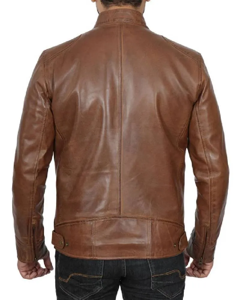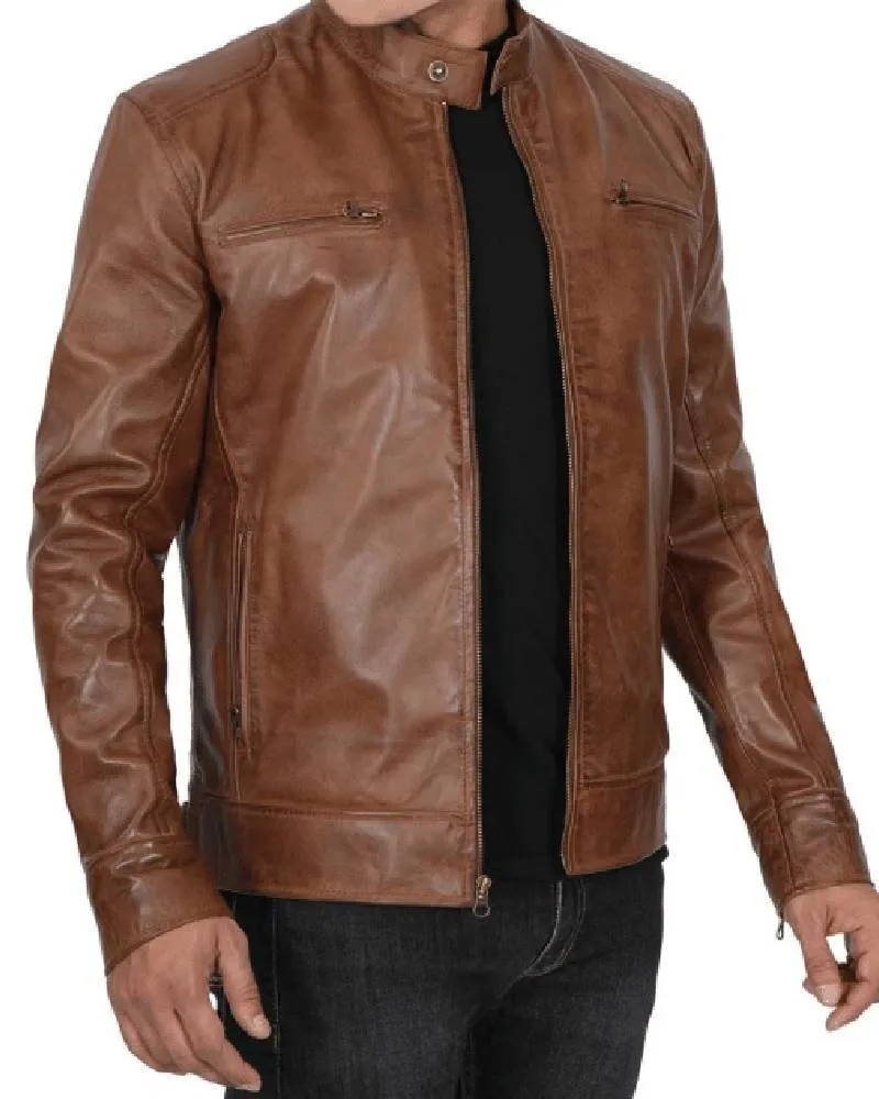 Men’s Chocolate Brown Lambskin Cafe Racer Leather Jacket