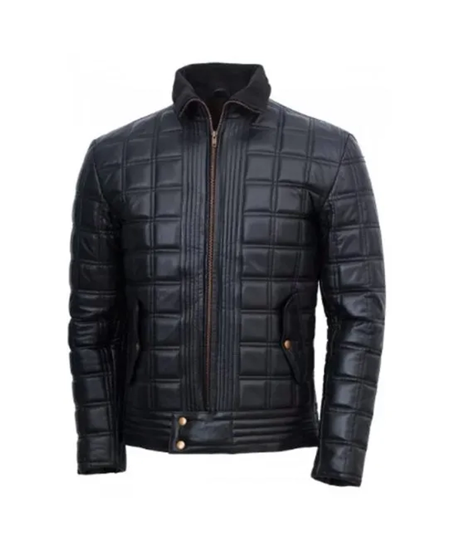 Men’s Classic Black Quilted Leather Bomber Jacket