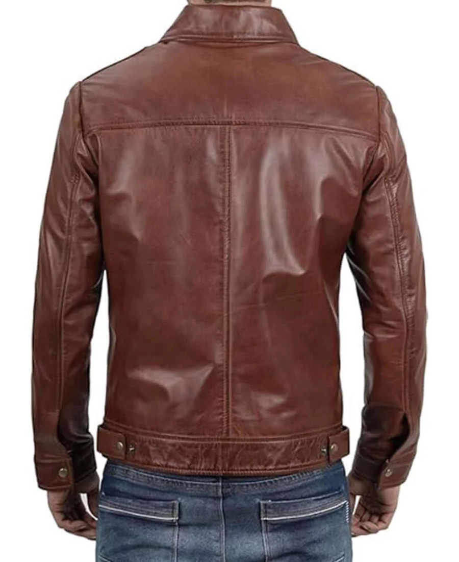 Shop The Men’s Classic Shirt Collar Brown Leather Jacket
