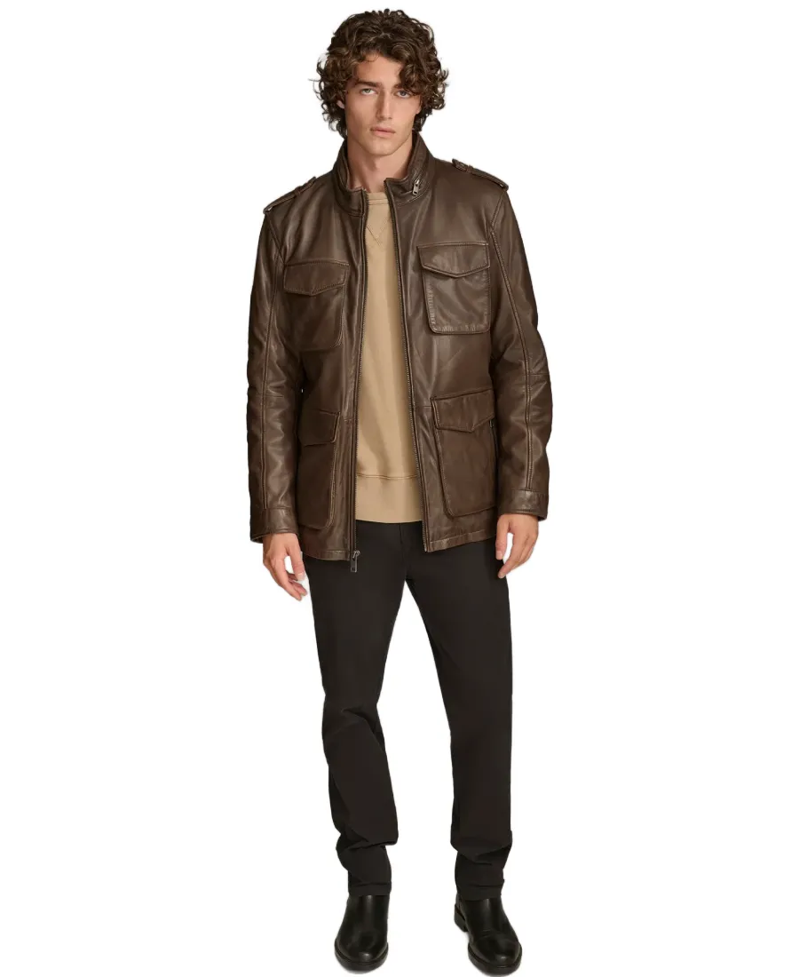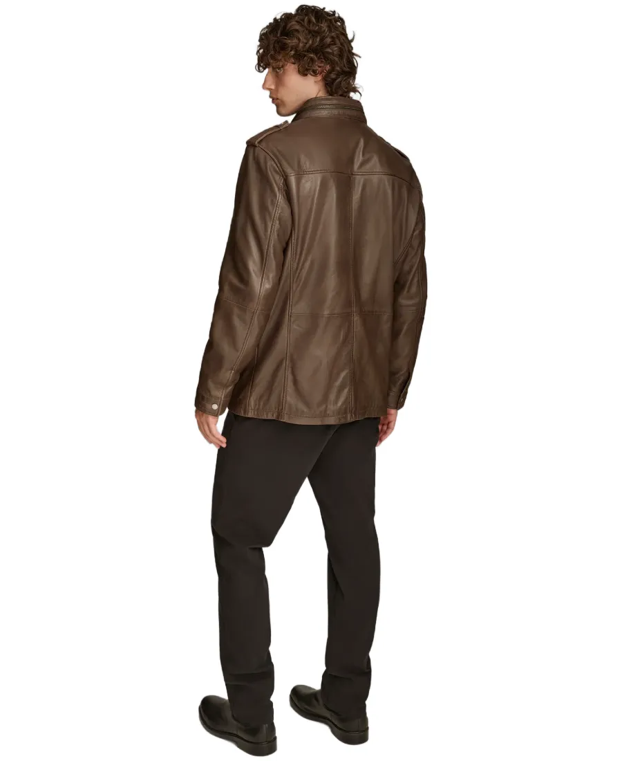 Shop The Men’s Dark Brown Cam Field Leather Jacket