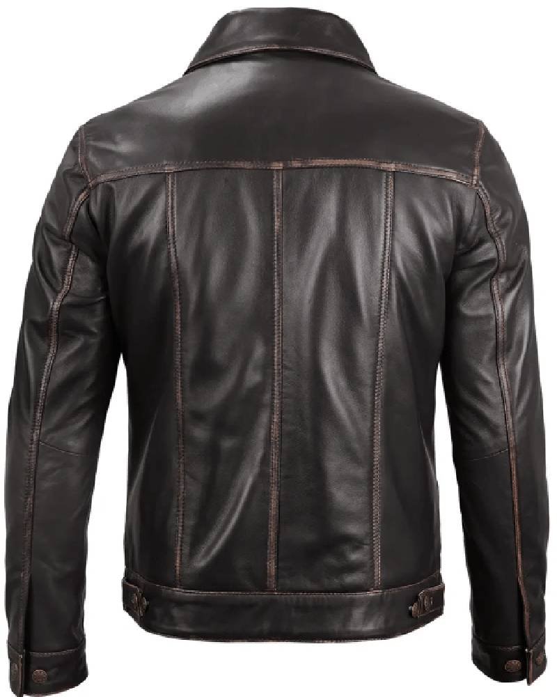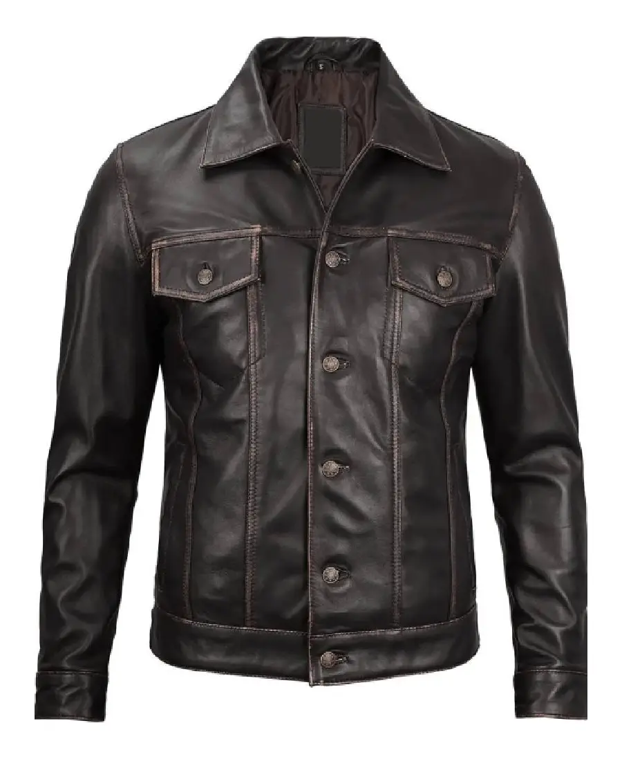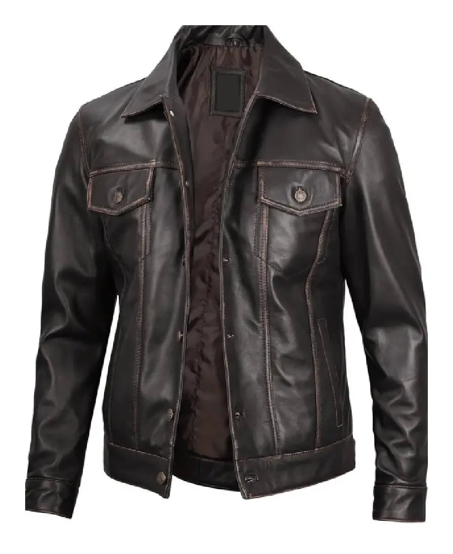 Mens Dark Brown Leather Trucker Jacket