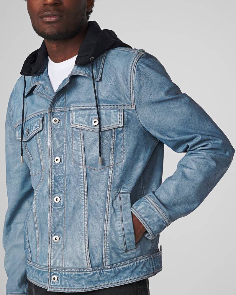 Shop The Men’s Denim Leather Jacket With Hood