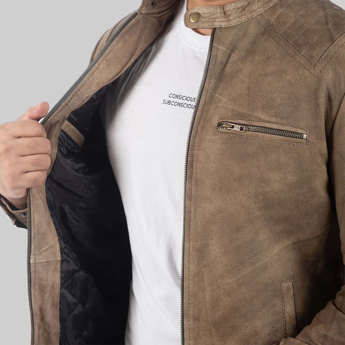Shop The Men’s Distressed Beige Suede Biker Jacket