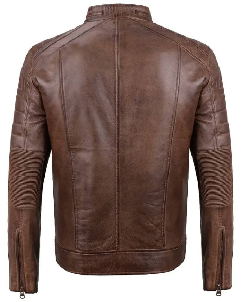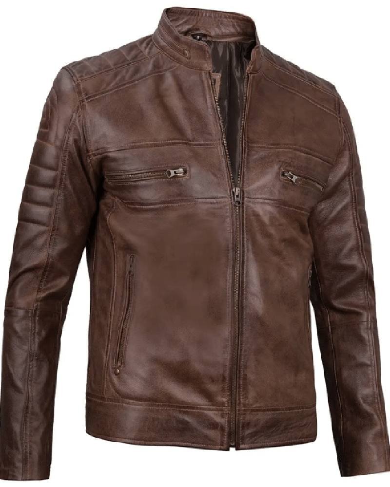 Men’s Distressed Coffee Brown Leather Cafe Racer Jacket