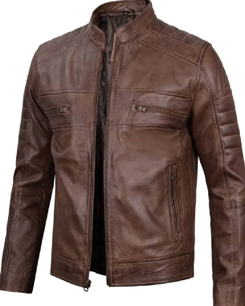 Be the first to review “Men’s Distressed Coffee Brown Leather Cafe Racer Jacket” Cancel reply
