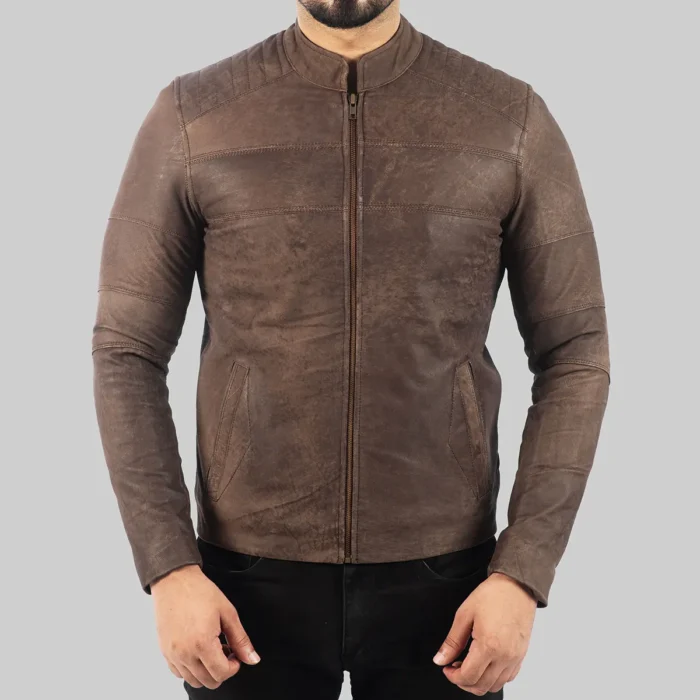 Men’s Distressed Dark Brown Leather Biker Jacket